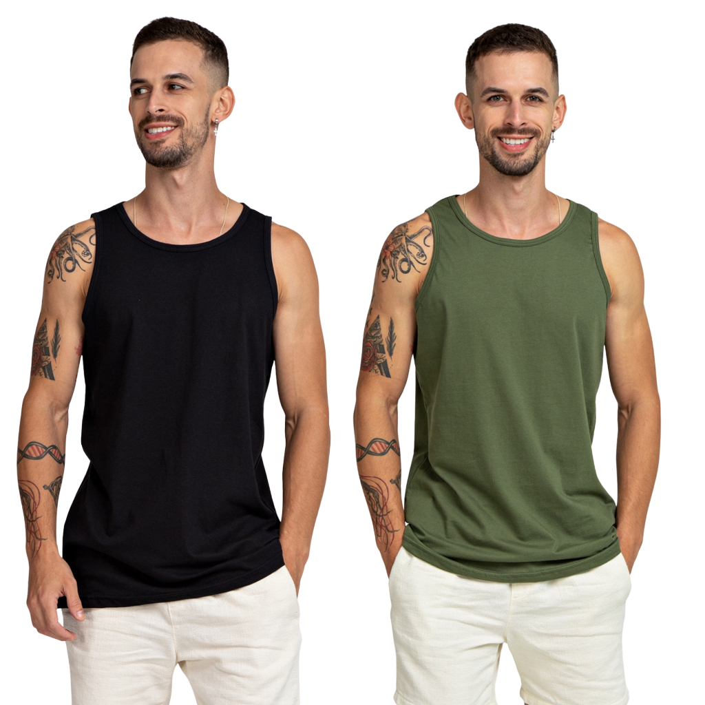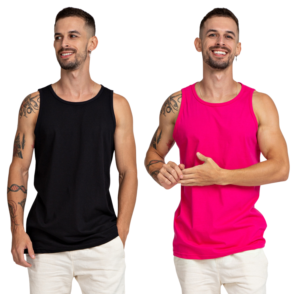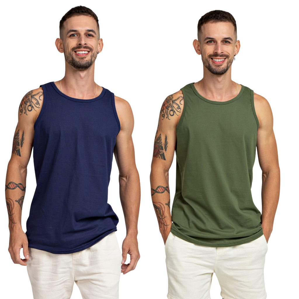 Kit 2 Regatas Masculinas Algodão Academia Várias Cores