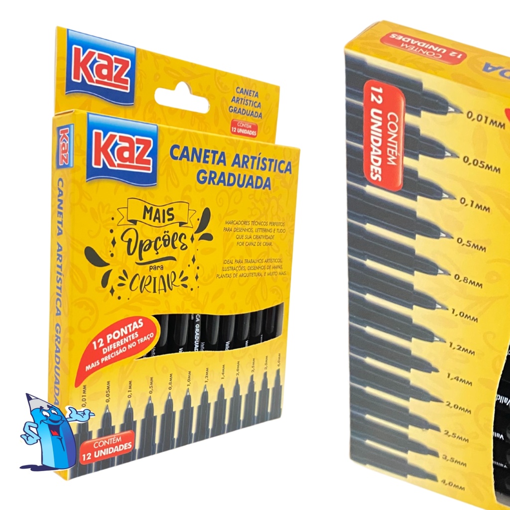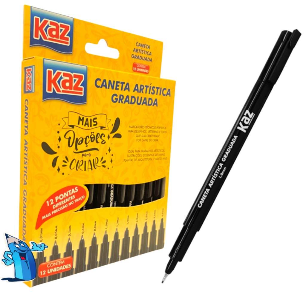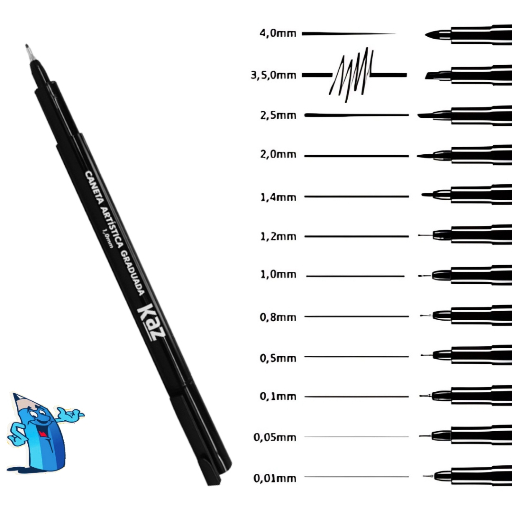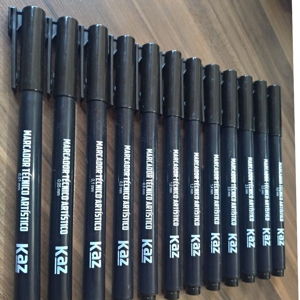 Kit Canetas Tecnicas 12 unidades Artístico Nankin Graduada Lettering Preta KZ72186