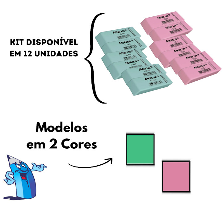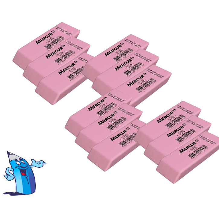 BORRACHA ESCOLAR MERCUR CLEAN ROSA 12 UNIDADES PAPELARIA