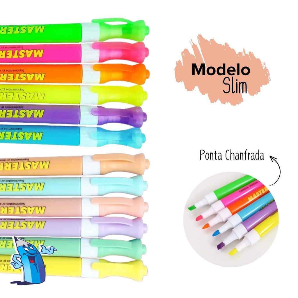 KIT MARCA TEXTO 6 e 12 CORES PASTEL E NEON MODELO SLIM MASTERPRINT