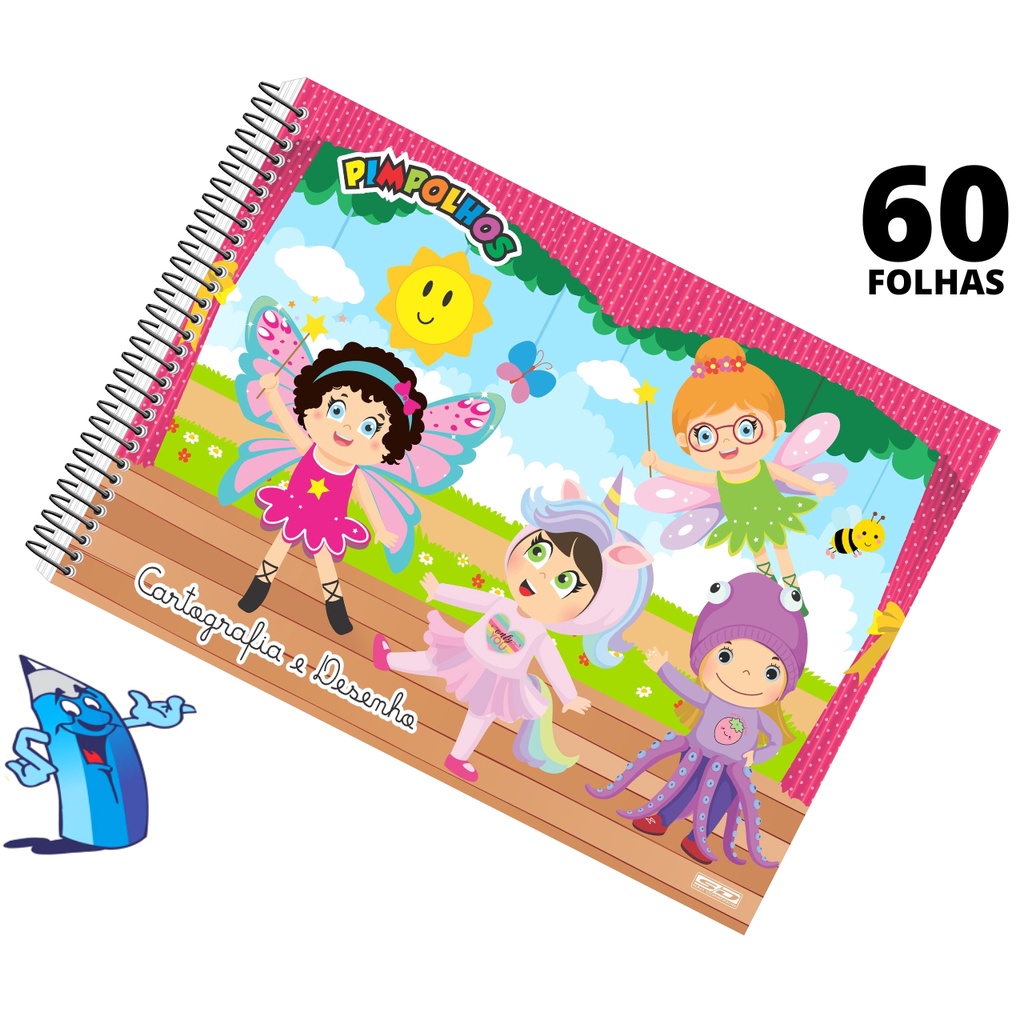 CADERNO DE DESENHO E CARTOGRAFIA CAPA DURA 60 FOLHAS PIMPOLHOS SÃO DOMINGOS