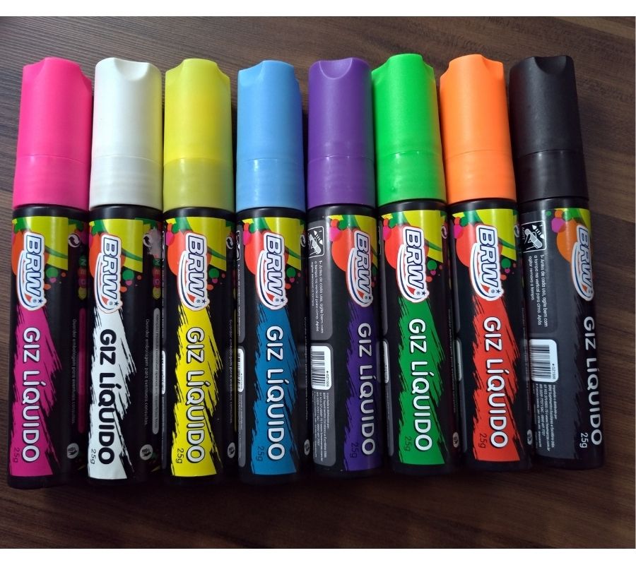 Caneta Giz Liquido Ponta Grossa Vidro de Carro Vitrine Lousa Neon BRW 25g