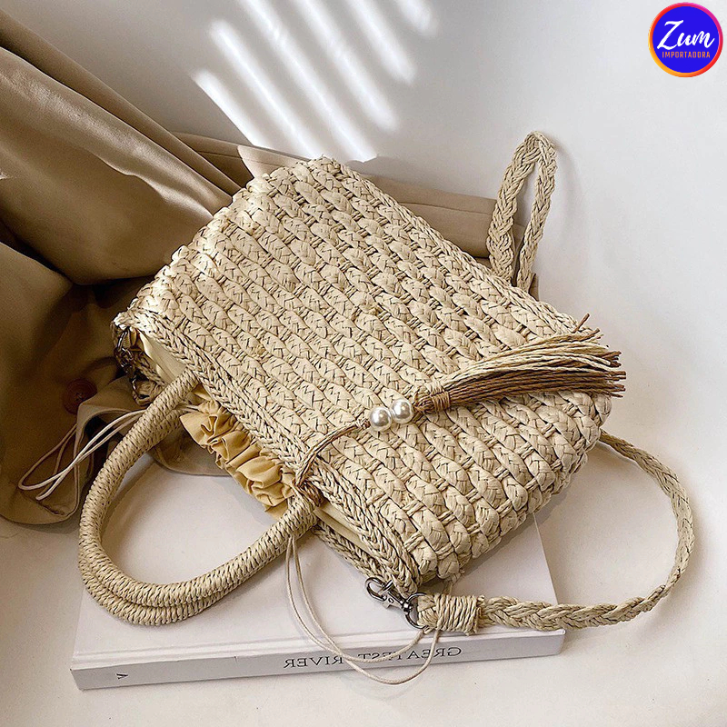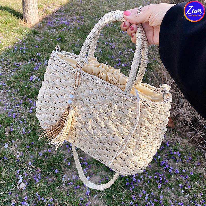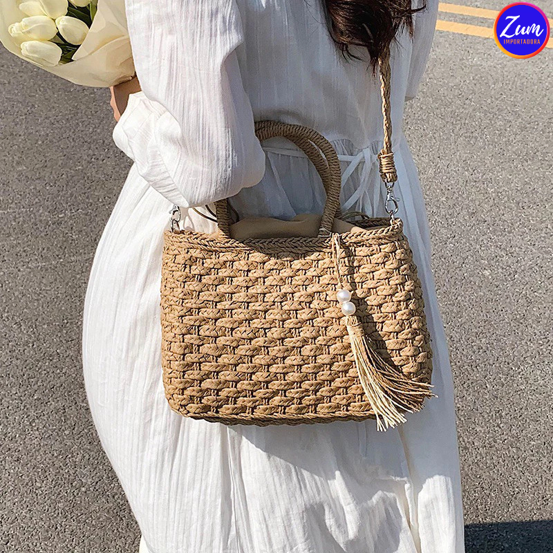 Bolsa de Palha Praia Feminina com Alça Leve e Estilosa para qualquer ocasião Look Verão Blogueira SZJ-68017
