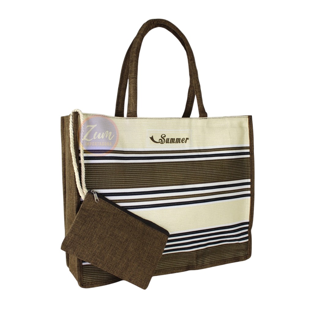 Bolsa de Praia + Bolsinha Verão Feminina Bolsa em Lona Várias Estampas KD-21