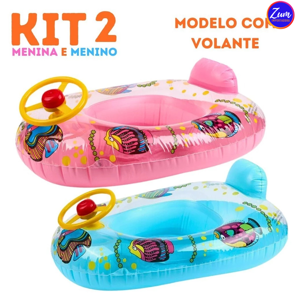 Boia Carrinho Com Volante Bote Inflável Infantil Para Criança Praia Piscina Lazer Verão