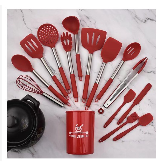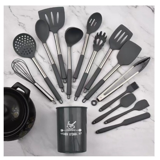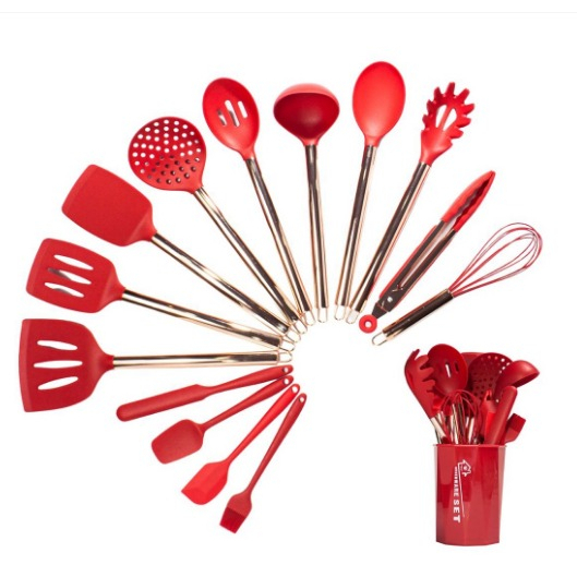 Kit Jogo De Cozinha Silicone 12 Peças Utensílios Deluxe Cabo De Bamboo