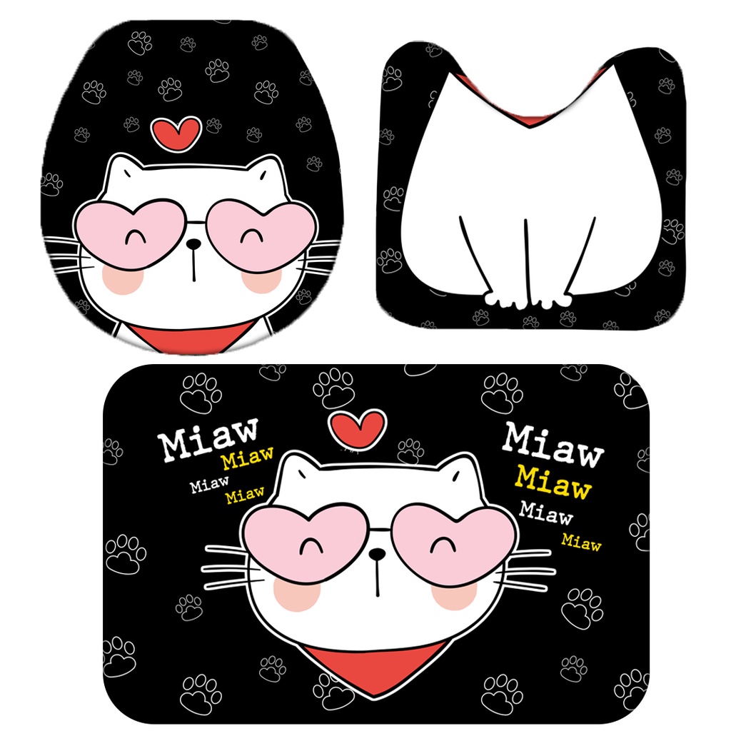 kit jogo tapete emborrachado para banheiro Estampa Gatinho fofinho tamanho PLUS antiderrapante 3 peças