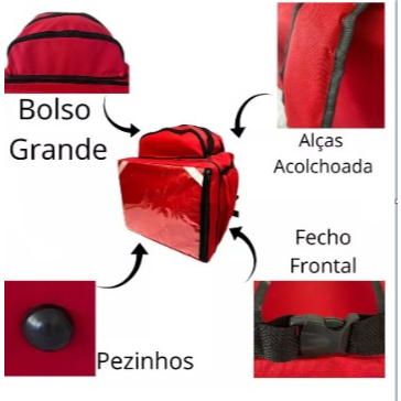 Mochila Bag Pizza Motoboy Delivery 45 litros vermelha com isopor 45 litros lâminado ou somente capa