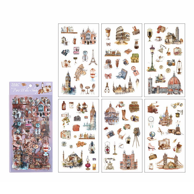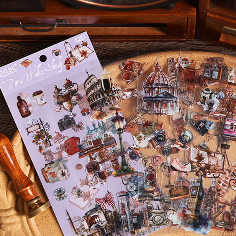 6 Folhas Memórias Vintage Série Adesivos PET À Prova D'água Decalques De Material Para Jornalismo Decoração De Livro De Rascunho DIY Craft
