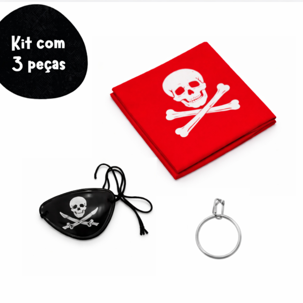 Kit Acessórios Pirata 3 Pçs Bandana Tapa Olho Brinco Carnaval Fantasia Cosplay Bloquinho Unissex Festa