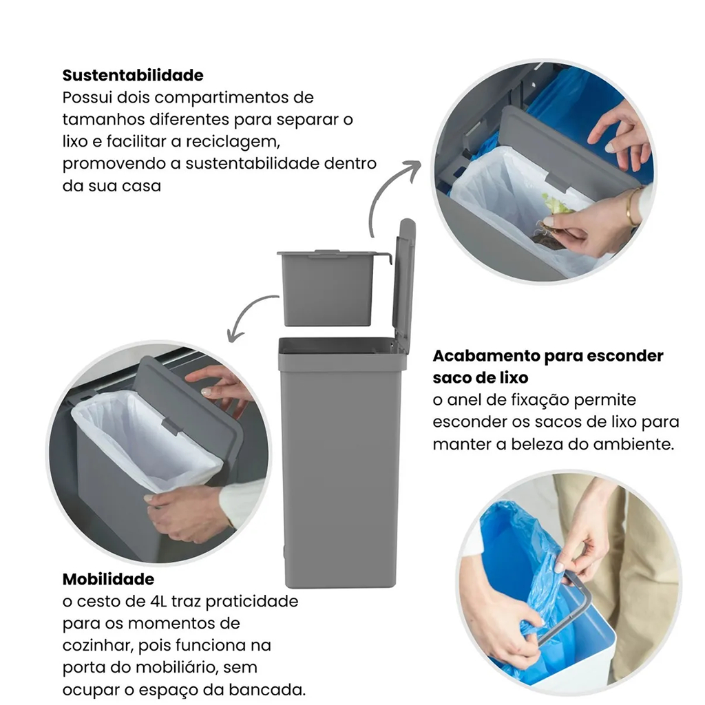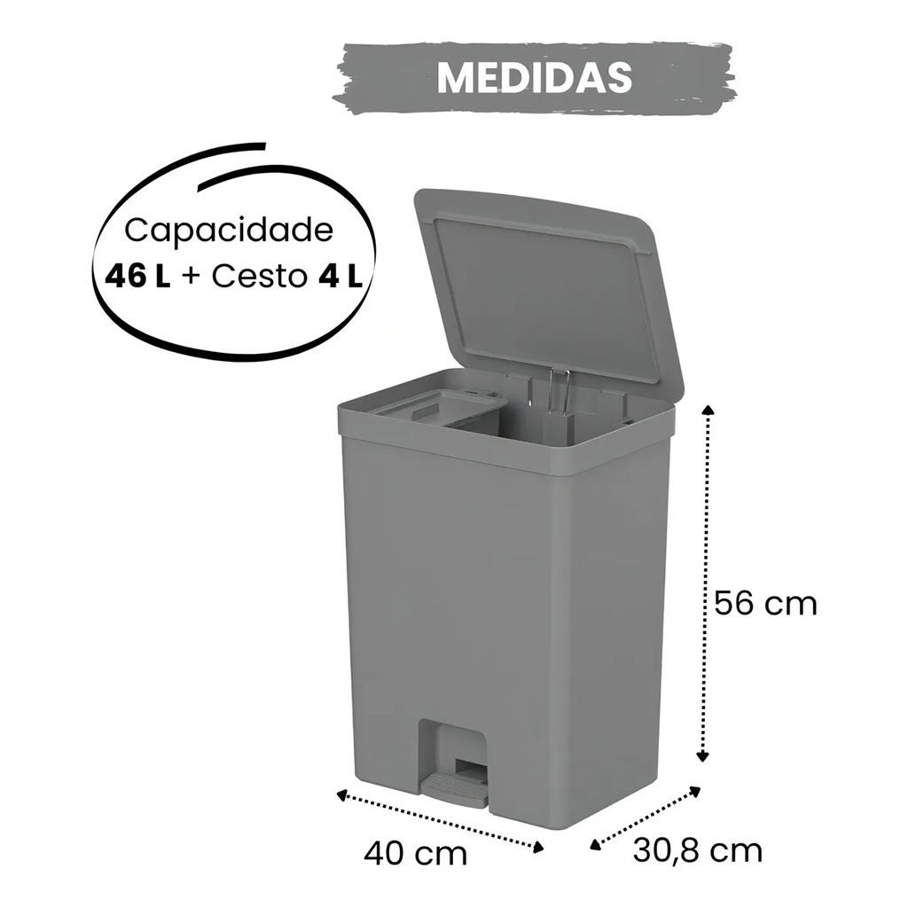 Lixeira De Pedal Trium 46 Litros Com Cesto Removível 4 Litros Bancada - OU