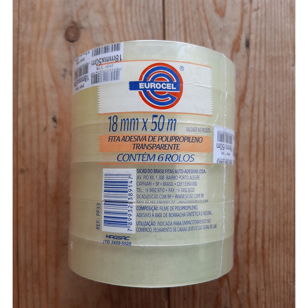 Kit Promoção De 6 Rolos Fita Adesiva Durex Transparente 18mm X 50m Eurocel