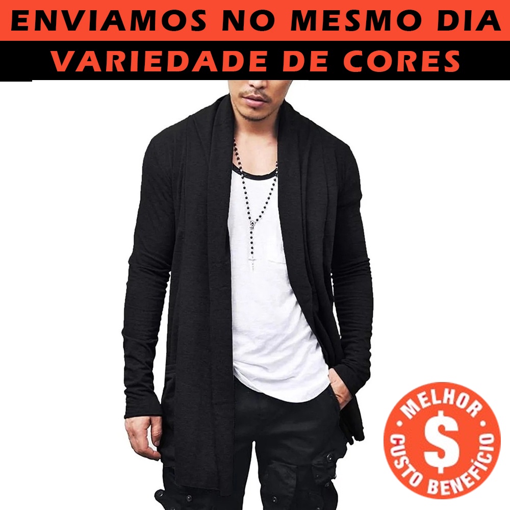 Cardigan Masculino Manga Longa Modelo Assimétrico