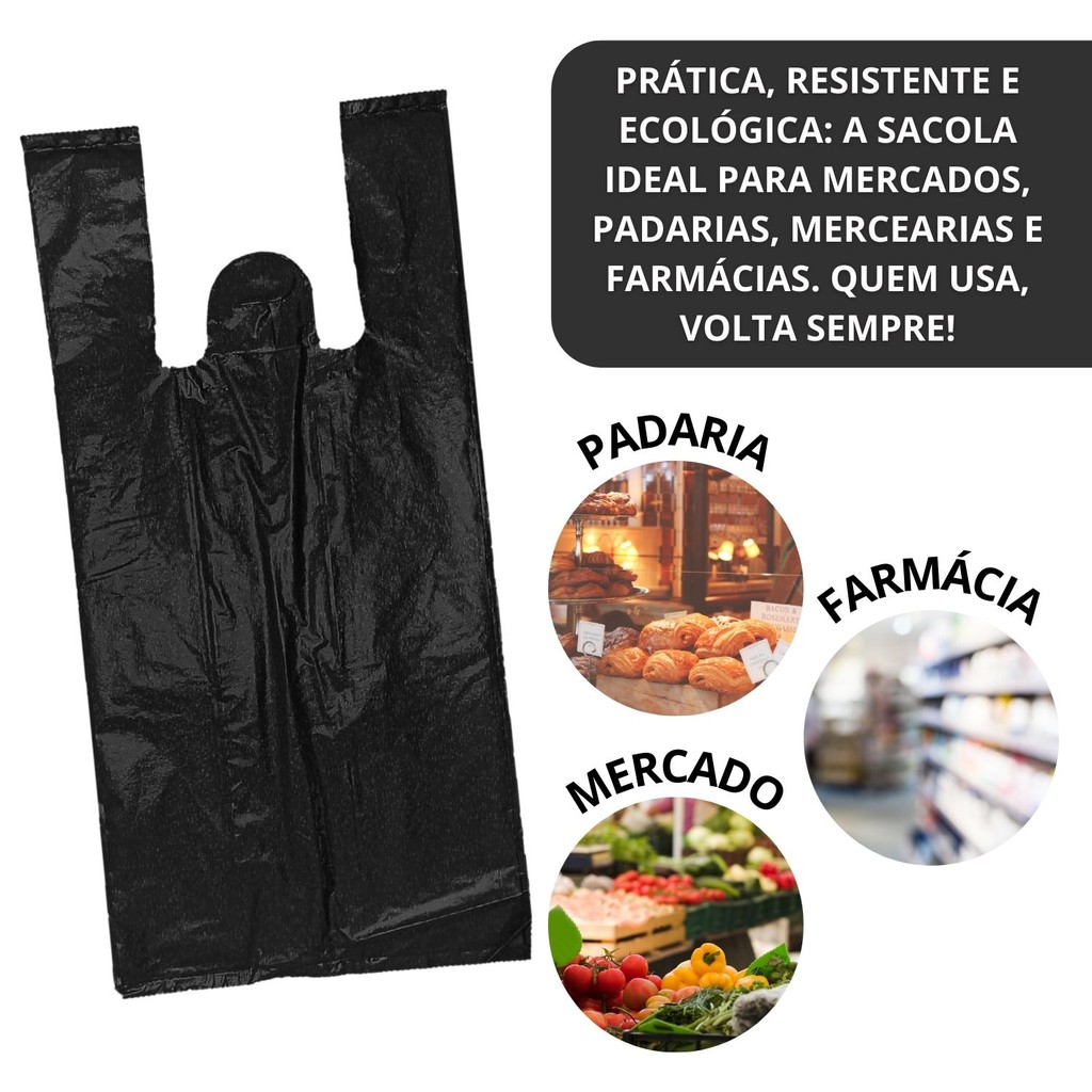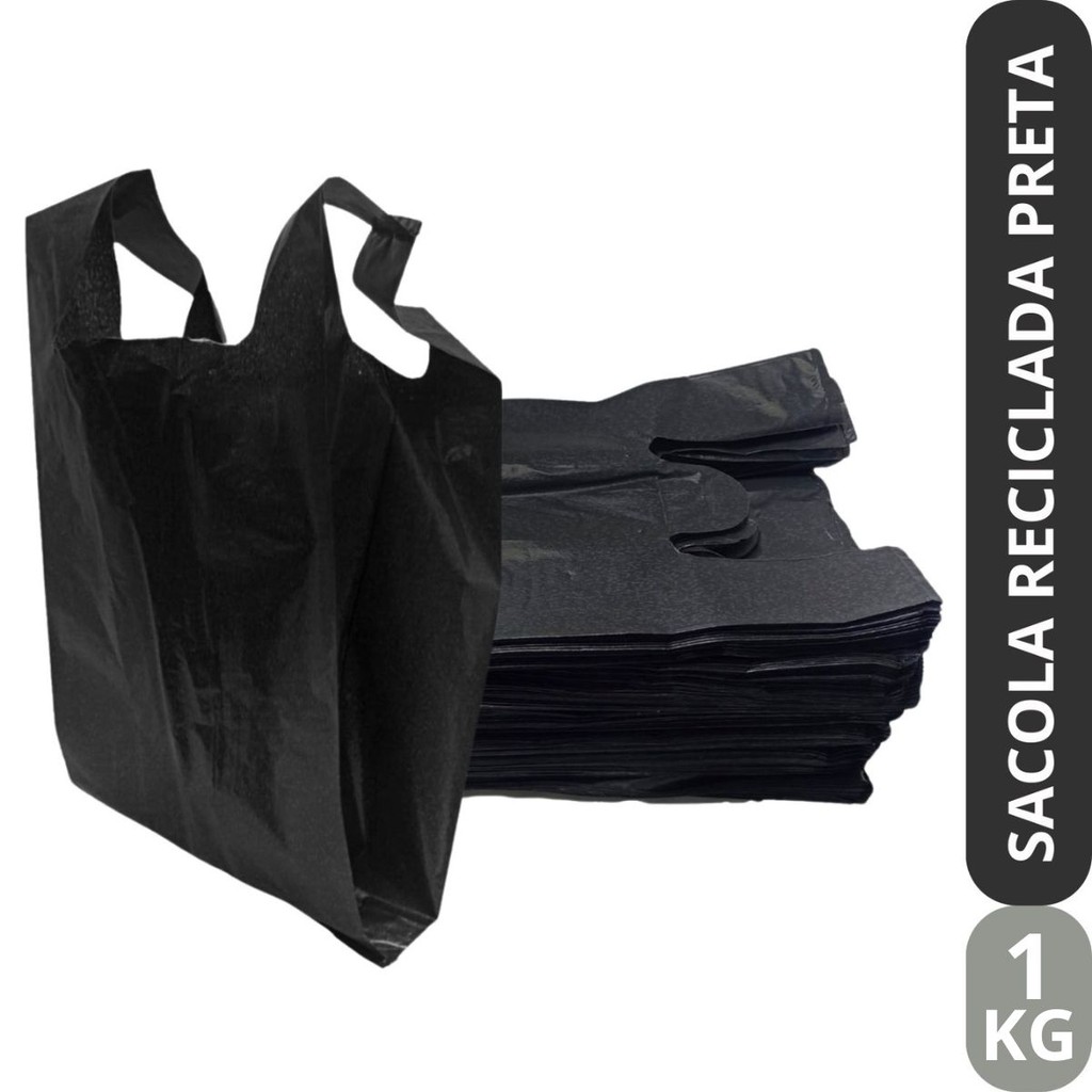 Sacola Para Adega Reciclada Resistente Preta Pacote Com 1 Kg Para Açougue Comércio