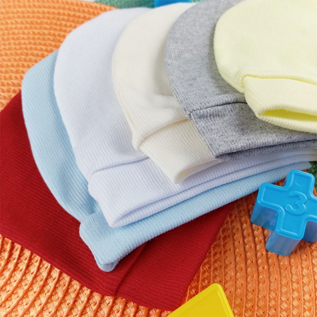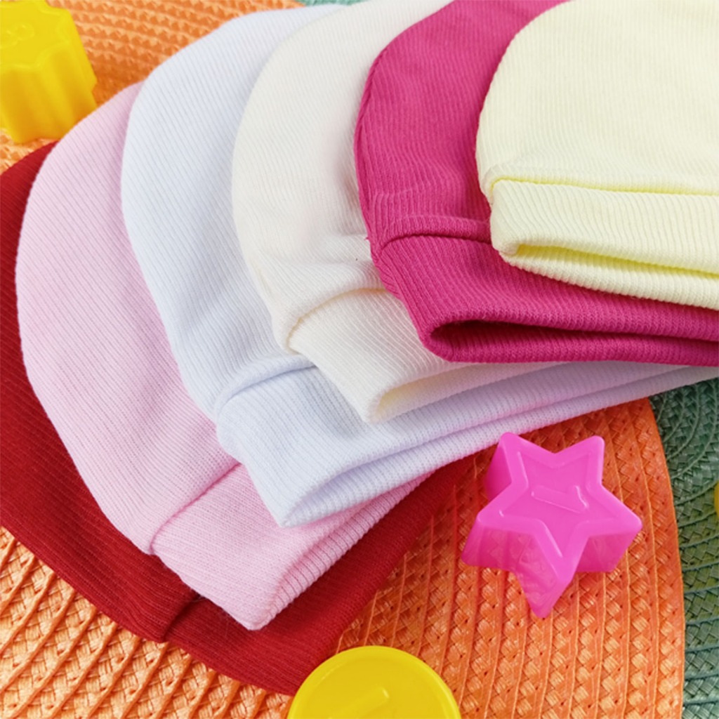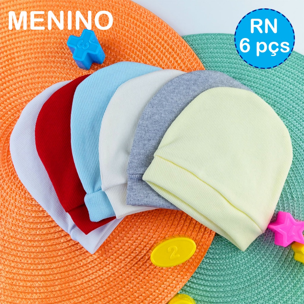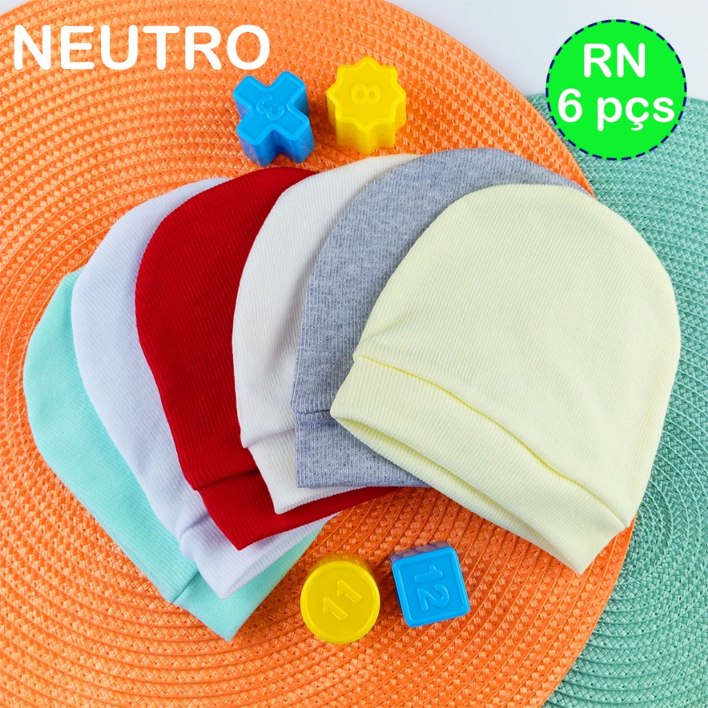 Kit 6 Toucas Coloridas Malha Canelada Touquinha Enxoval Bebê Recém Nascido e Saída Maternidade