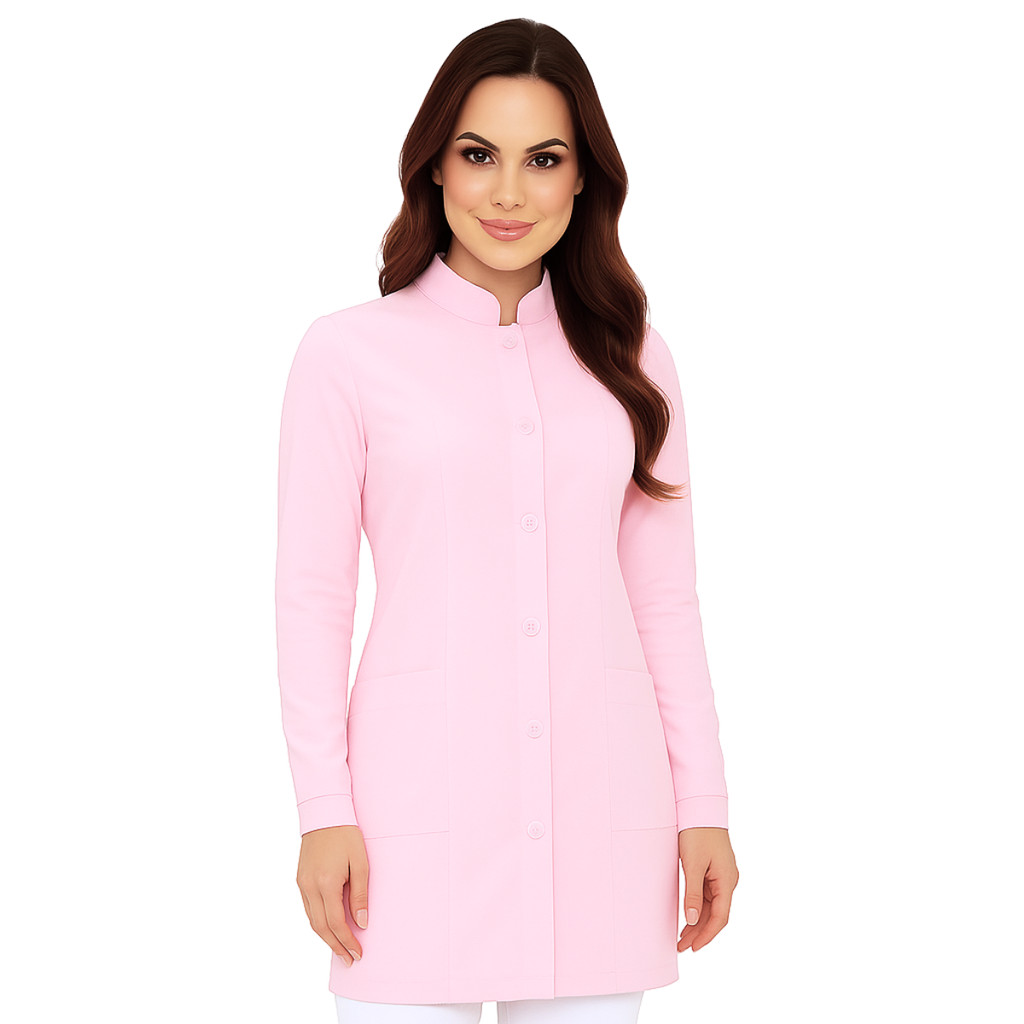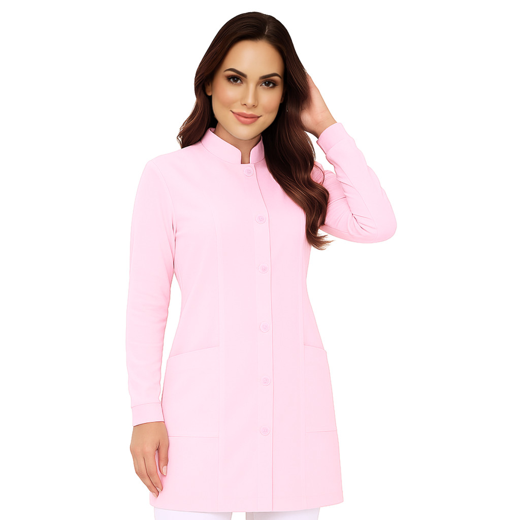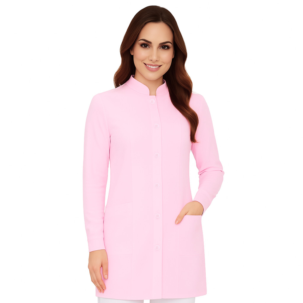 JALECO FLP Feminino Acinturado Gola Padre Manga Longa com Punho Oxford branco preto Rosa moda