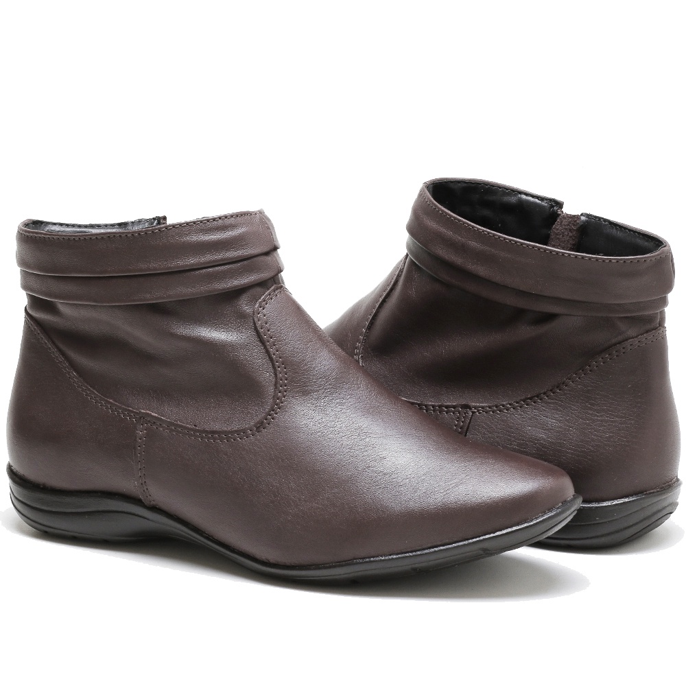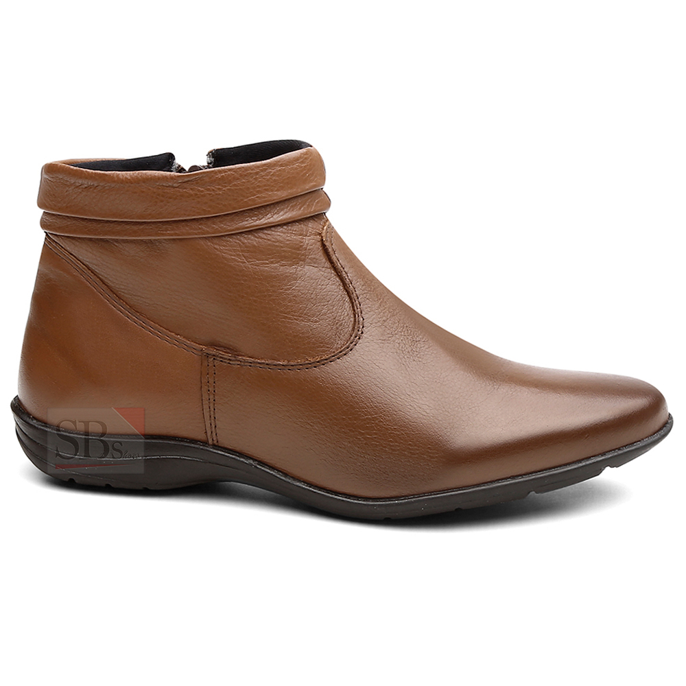 Bota Feminina Couro Legítimo Sb Shoes Cano Curto Solado Baixo Confortável Prática Versátil Ref. 250