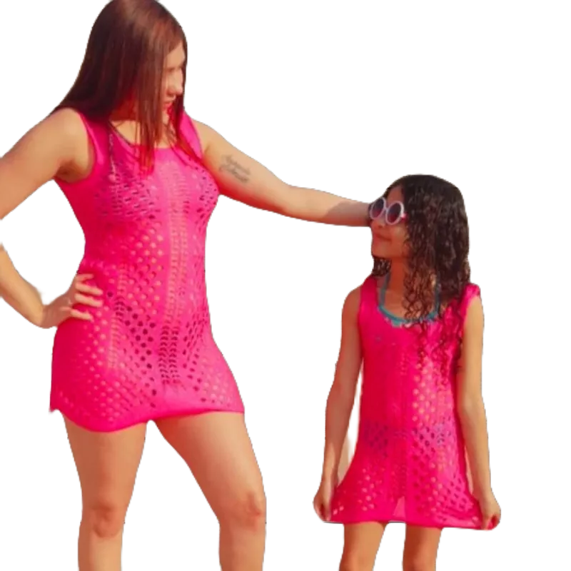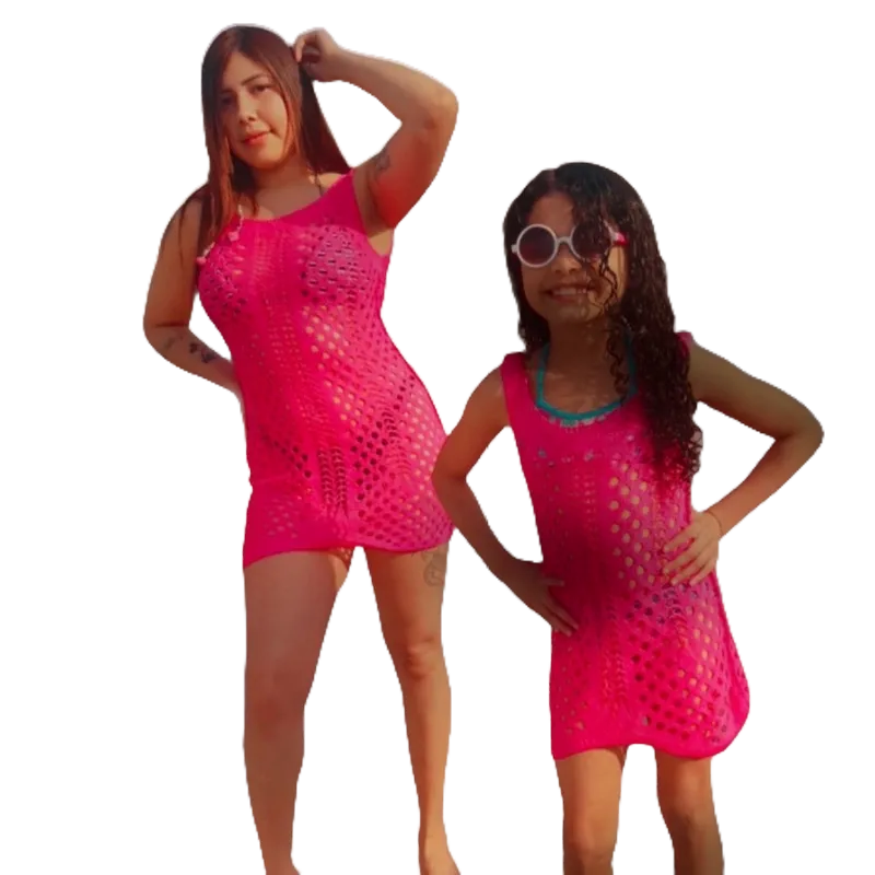 kit 2 saídas de Praia Feminina Tricô Tricot tal mãe tal filha Canga de pontas vestido Moda Verão