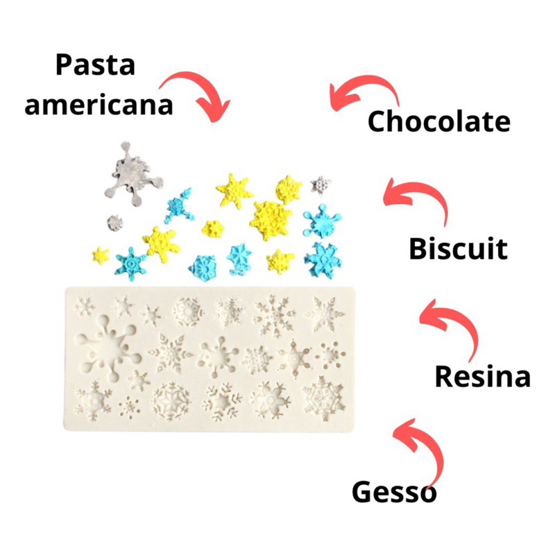 Molde De Silicone Flocos De Neve Para Confeitaria E Biscuit
