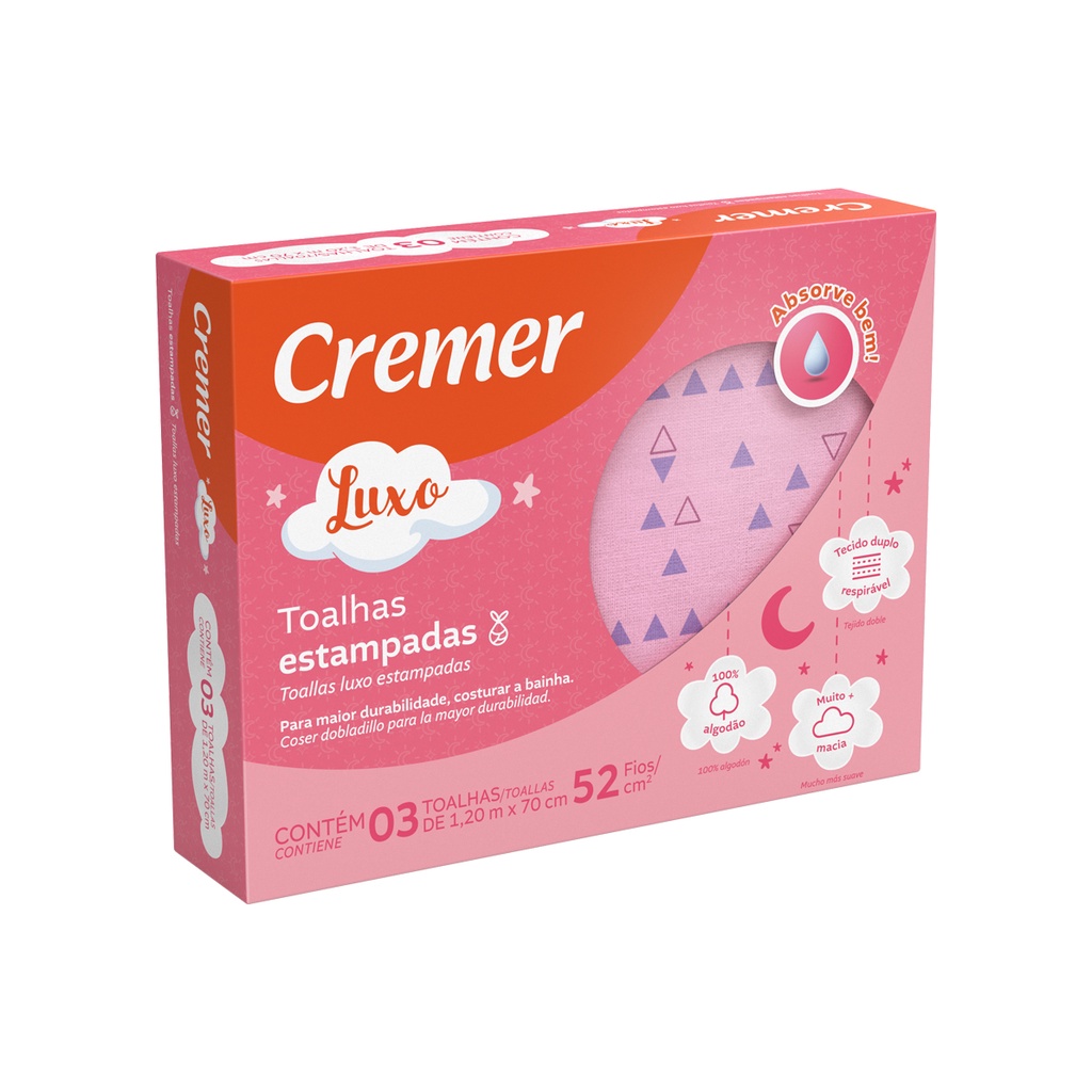 Toalha Fralda Luxo Cremer Estampada ou Branca 1,20cm x 70cm Macia 100% Algodão