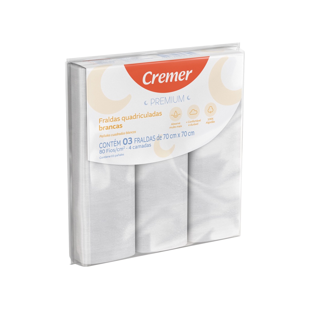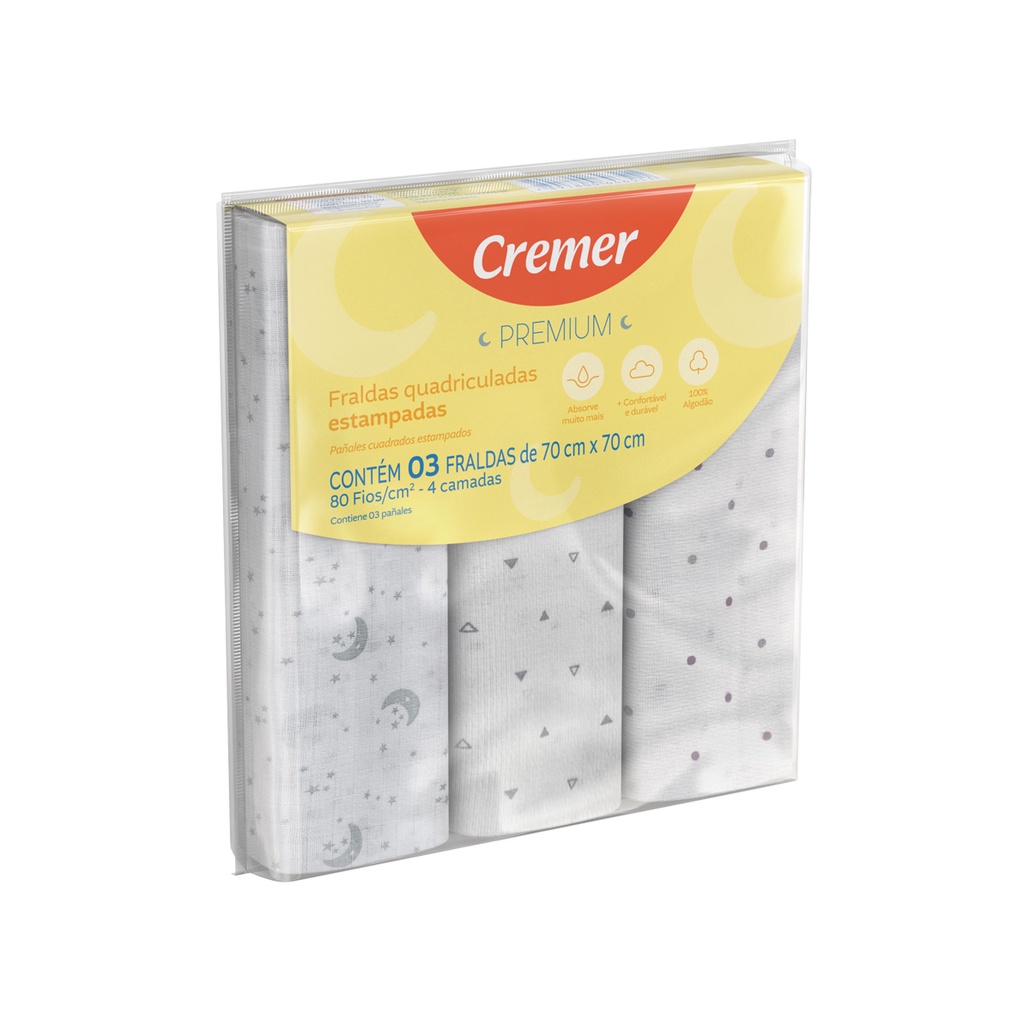 Fralda Premium 80 fios Cremer Branca ou Estampada