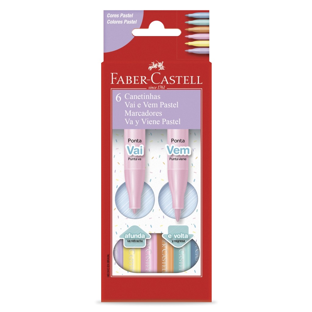 Canetinha Hidrográfica Vai e Vem Tom Pastel / Neon com 6 Cores - Faber-Castell / WX Gift