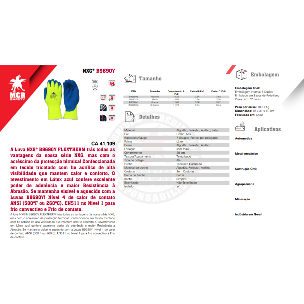 Luva Térmica -25°c A 260°c Conforto Aderência Mcr Epi