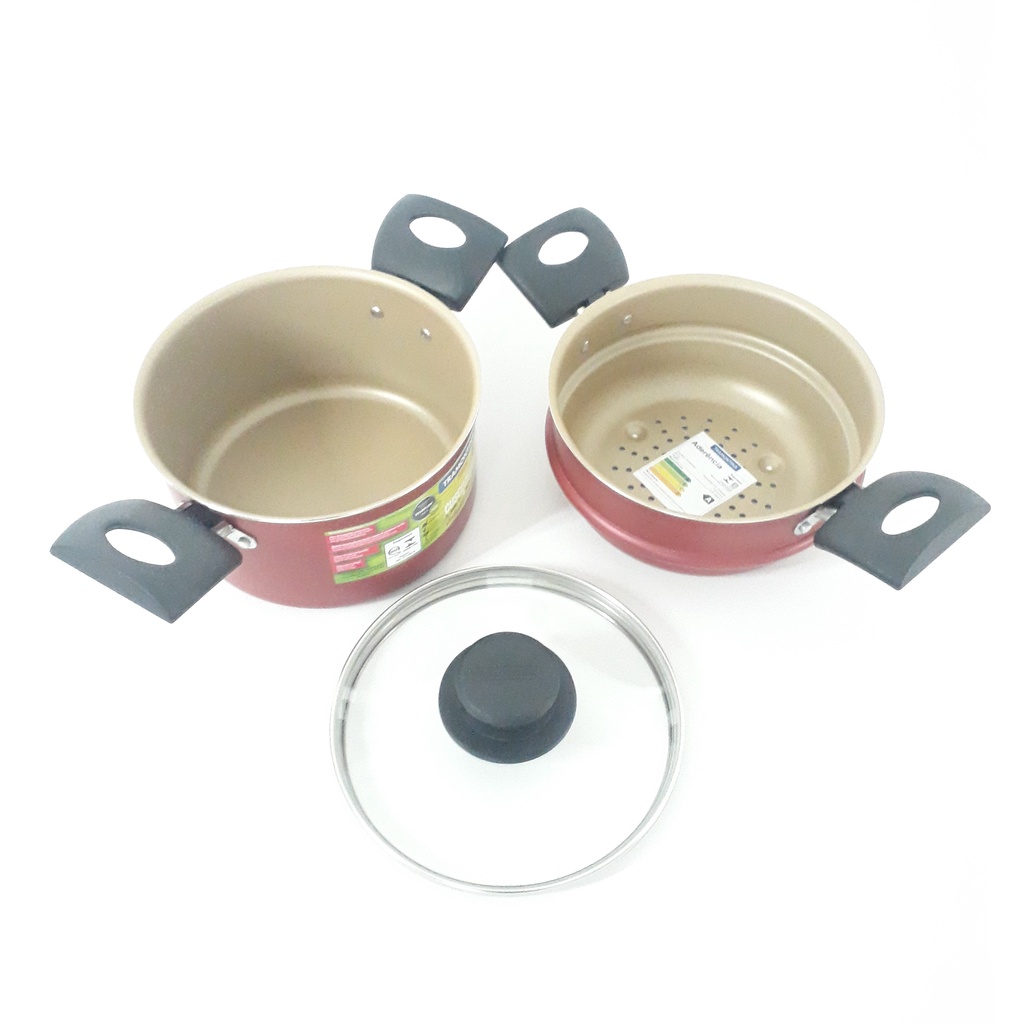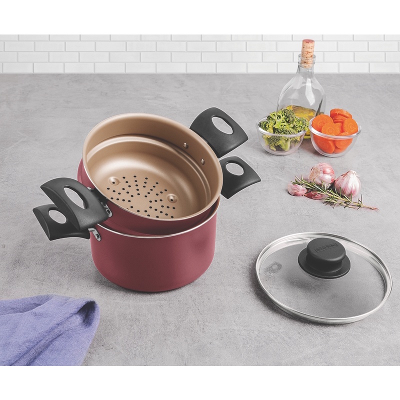 Cuscuzeira Tramontina antiaderente 16 cm Turim vermelha
