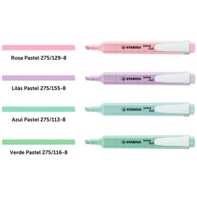 Kit Com 4 Marca Texto Stabilo SWING COOL Tom Pastel