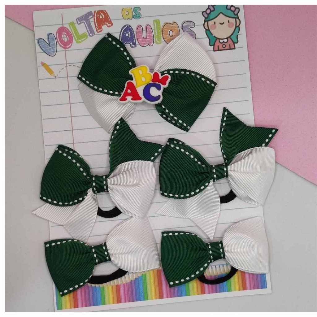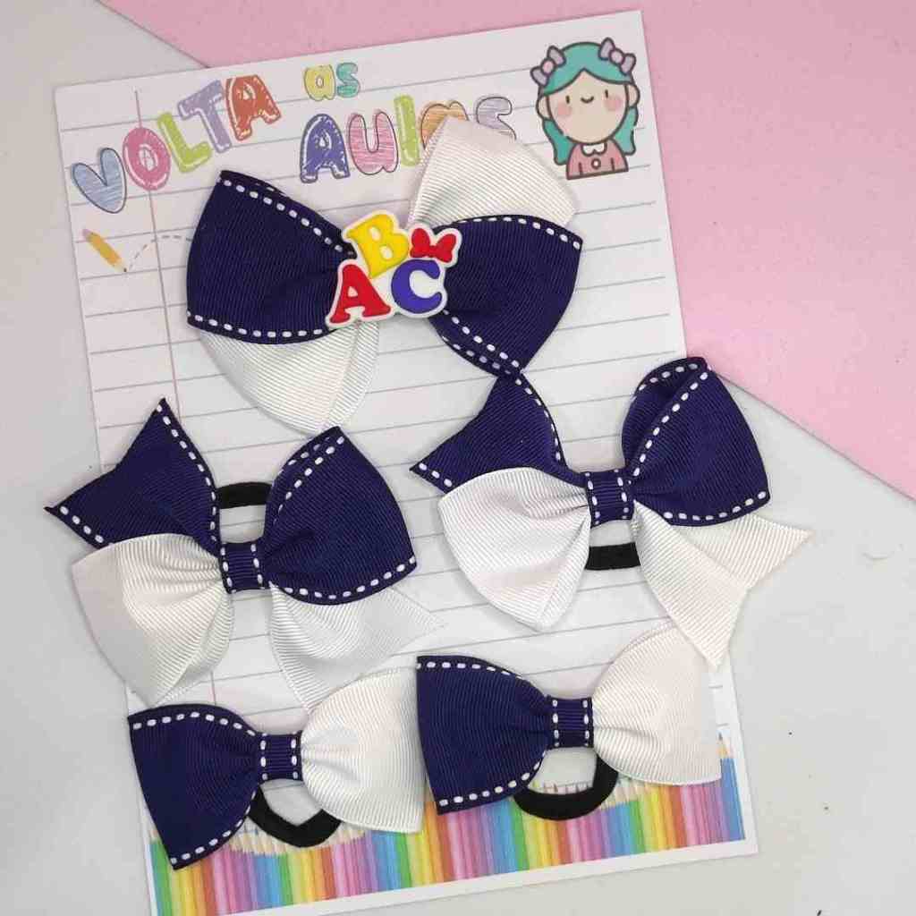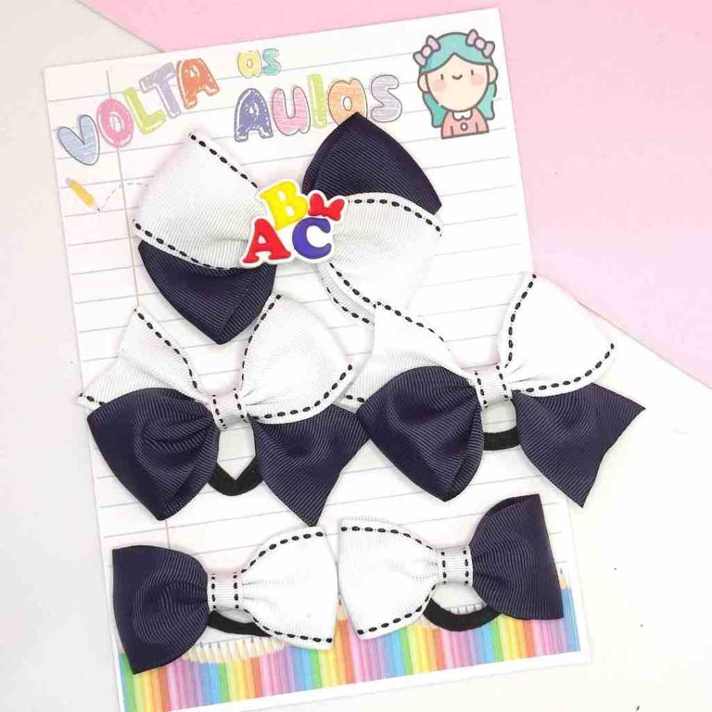 kit 5 laços escolar aplique ABC na xuxinha e no bico de pato acessório de cabelo infantil