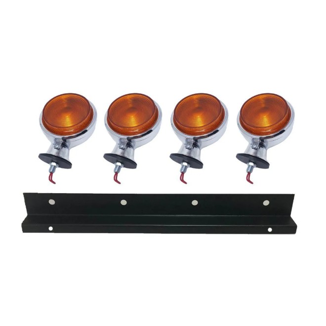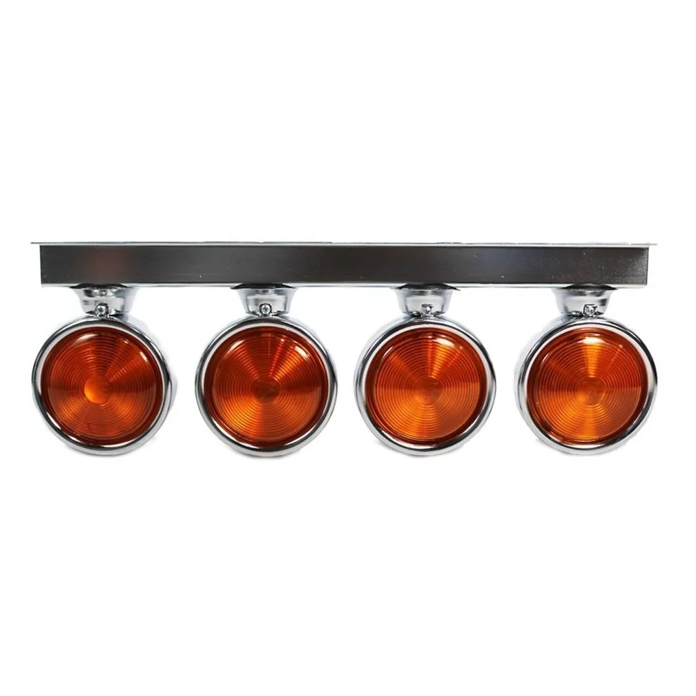 Kit Lanterna 4 Maria Foguinho Parachoque Caminhao Carreta Gaiola Universal Ambar Com Suporte Preto em Aço