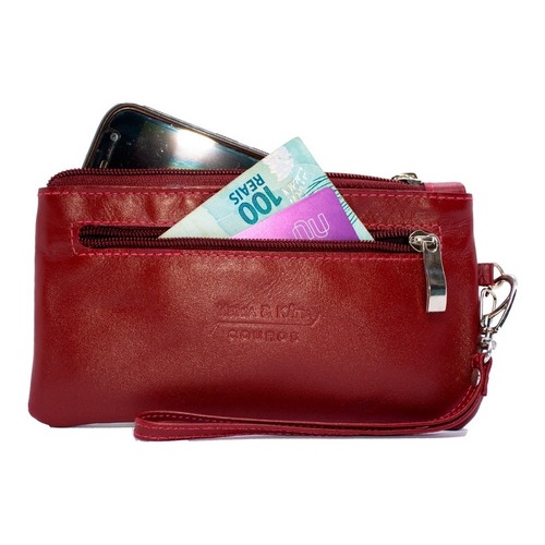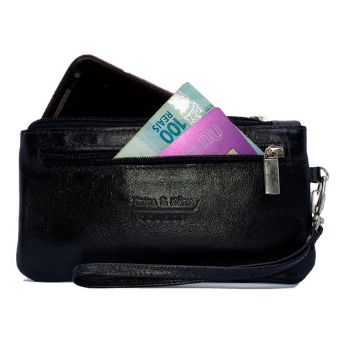 Carteira Bolsinha De Mão Porta Celular Cartão Dinheiro Couro