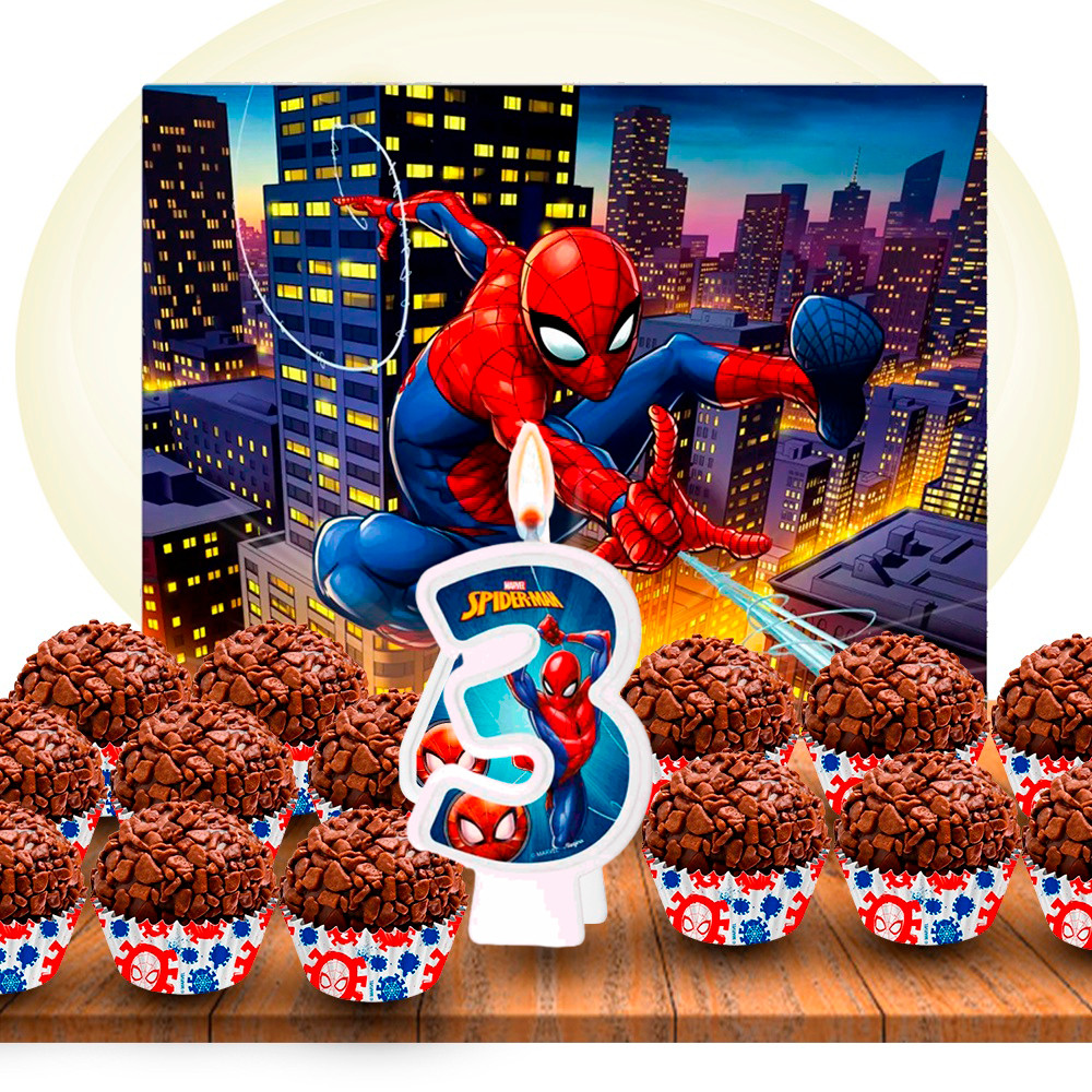 Kit Festa Homem Aranha Vela N3 + Painel + 100 Forminhas