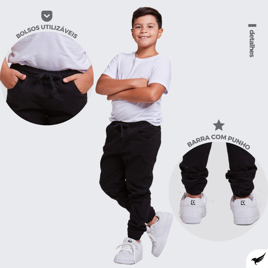 Calça Jeans Sarja Jogger Infantil Menino