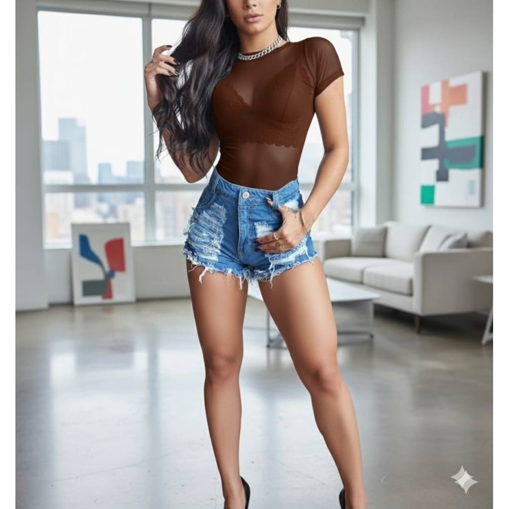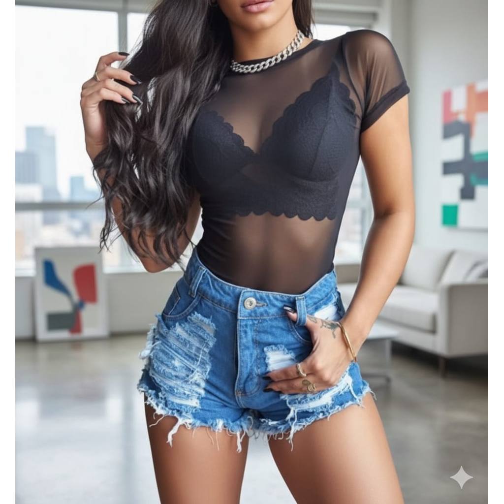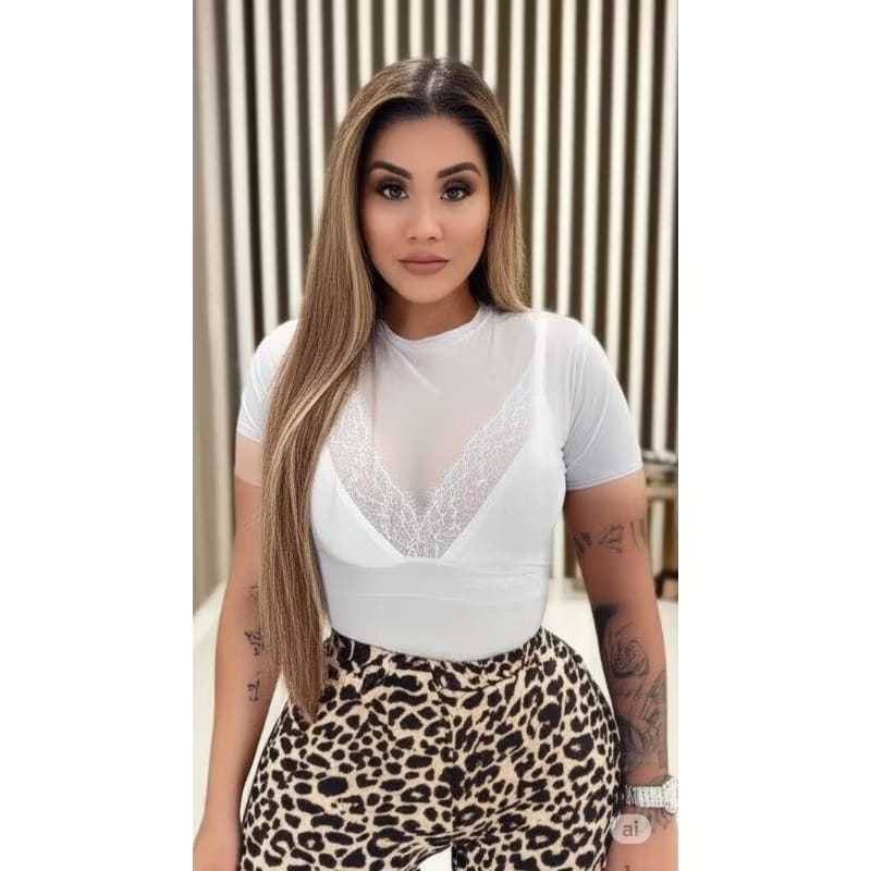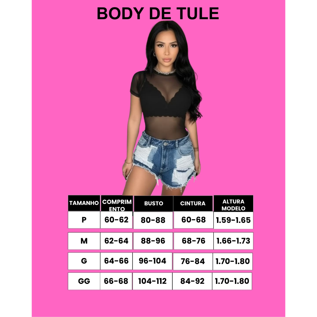 Body de Tule Manga Curta Feminino Transparente Bori Tendencia Verão Plus Size