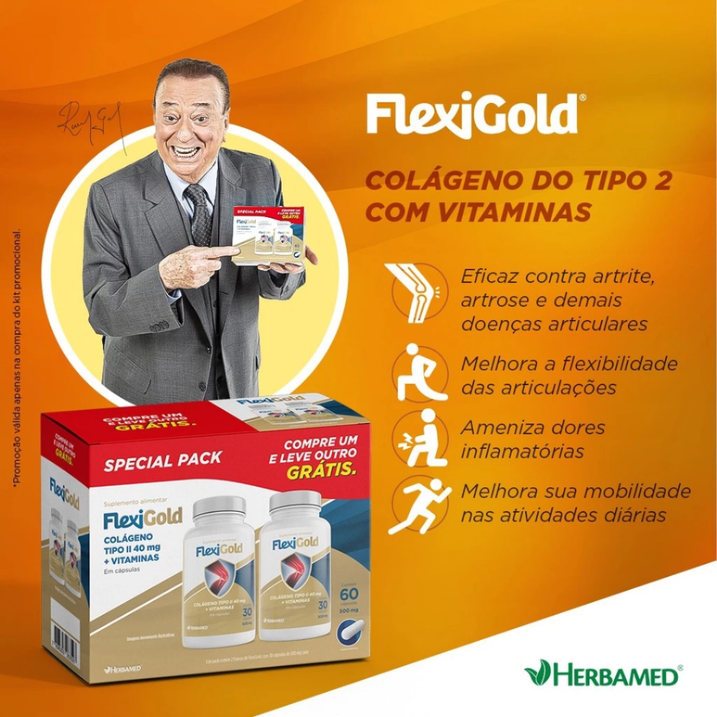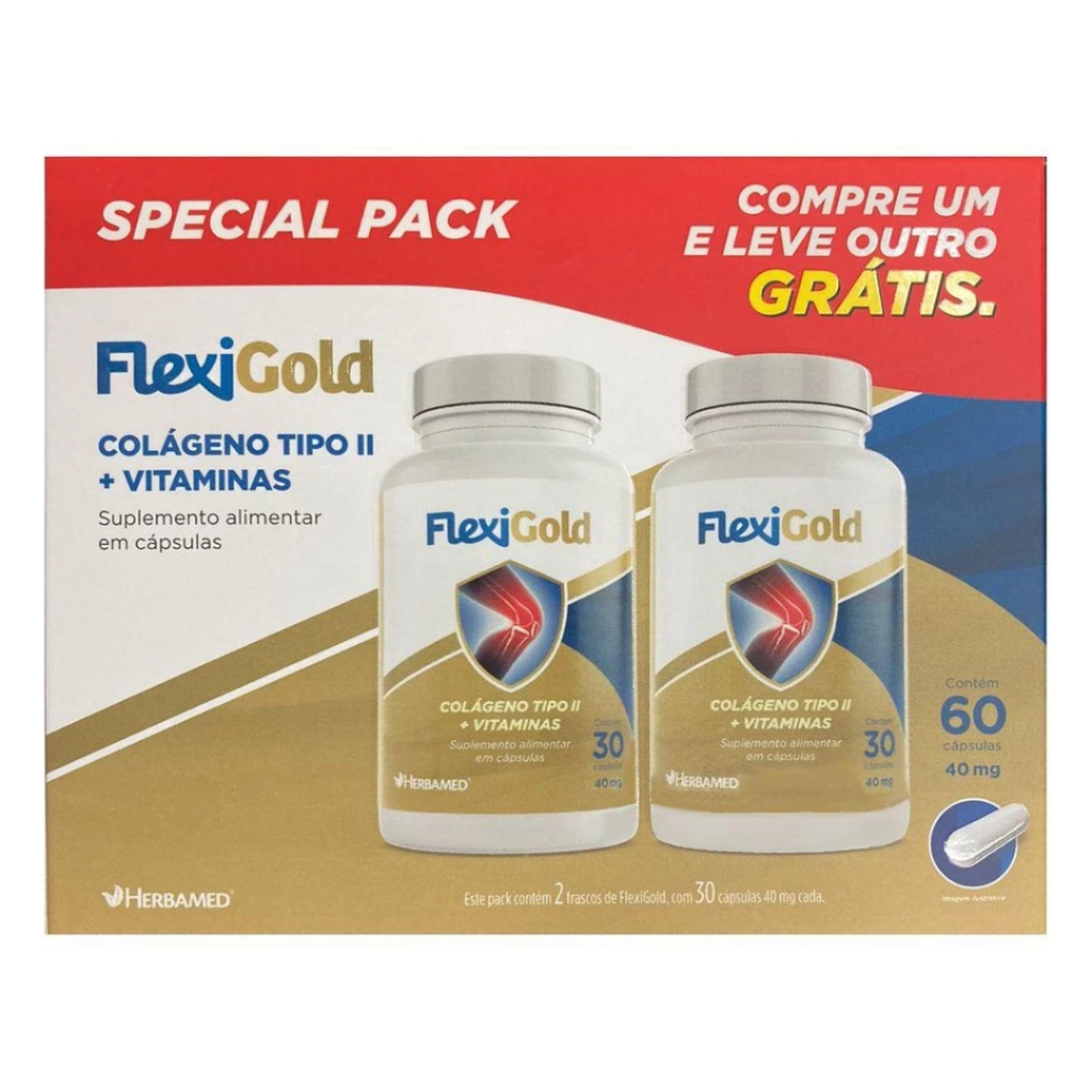 Flexigold Colágeno Tipo 2 - Kit 60 Cápsulas De Vitaminas Herbamed