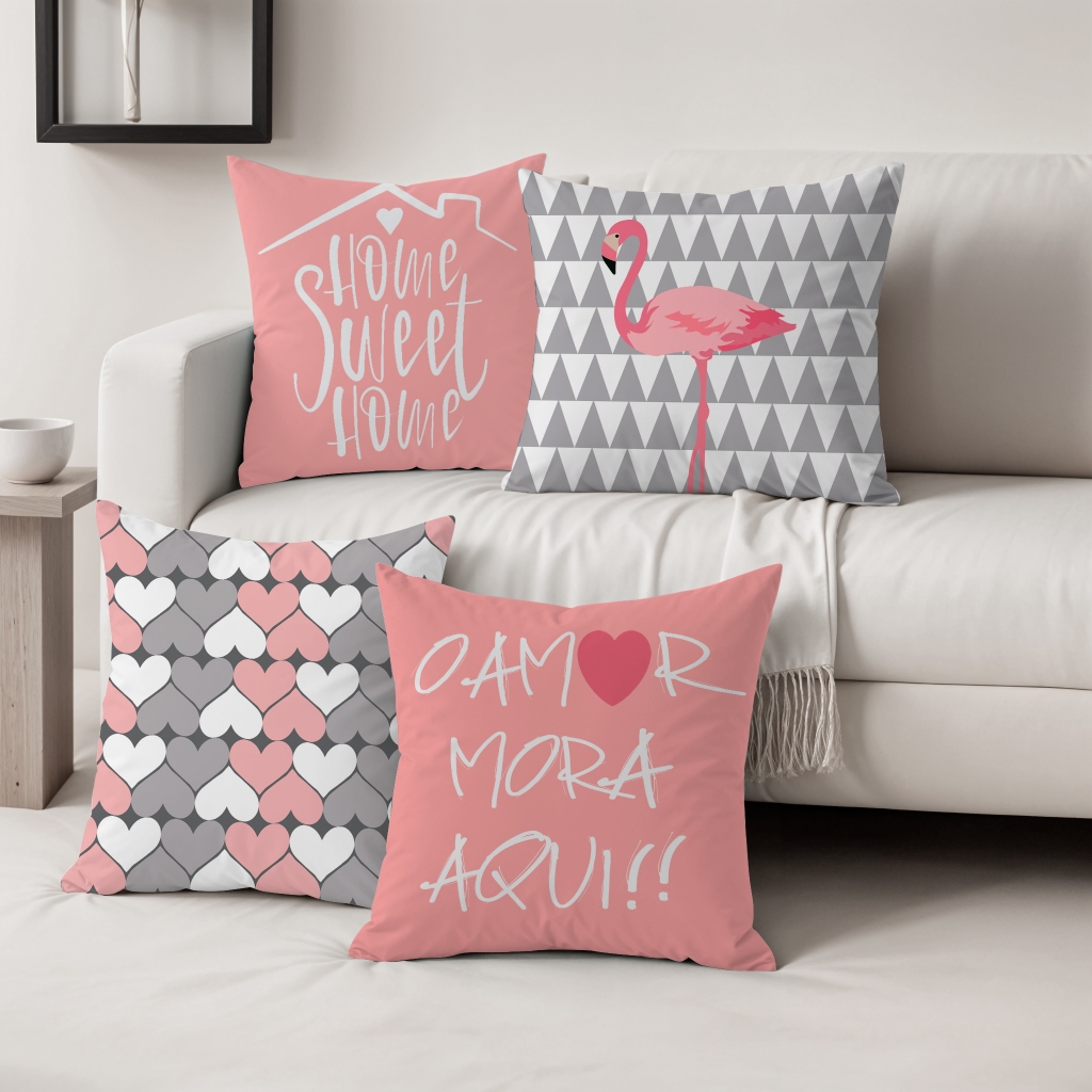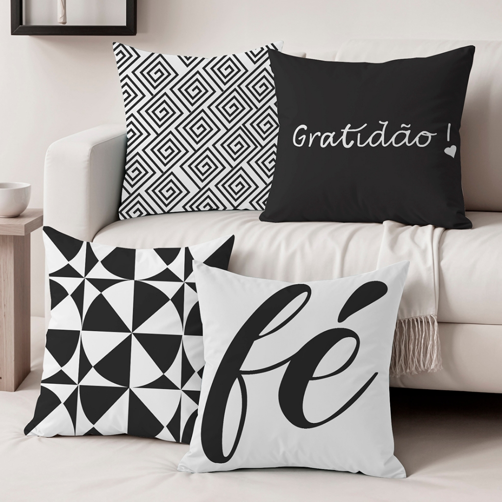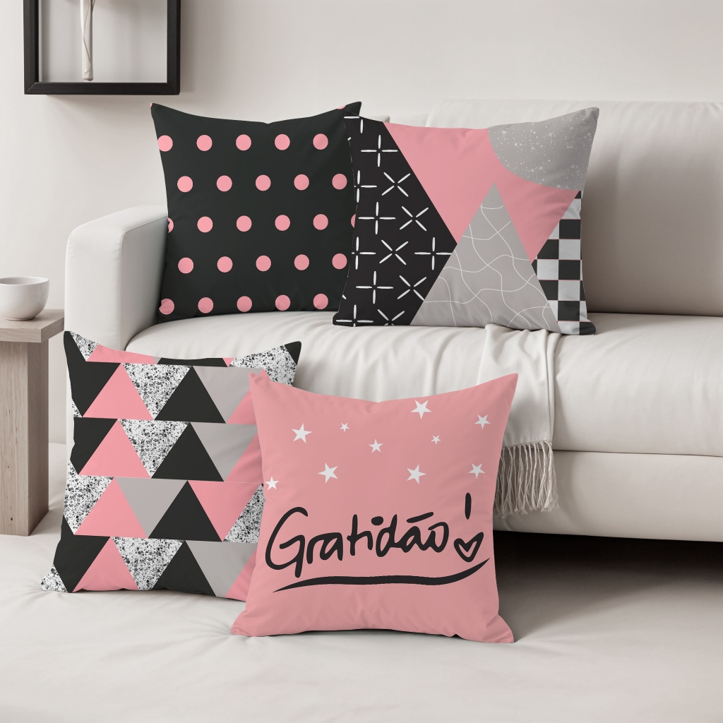 Kit Com 04 Capas Para Almofadas Para Sala 45x45 Em Oxford