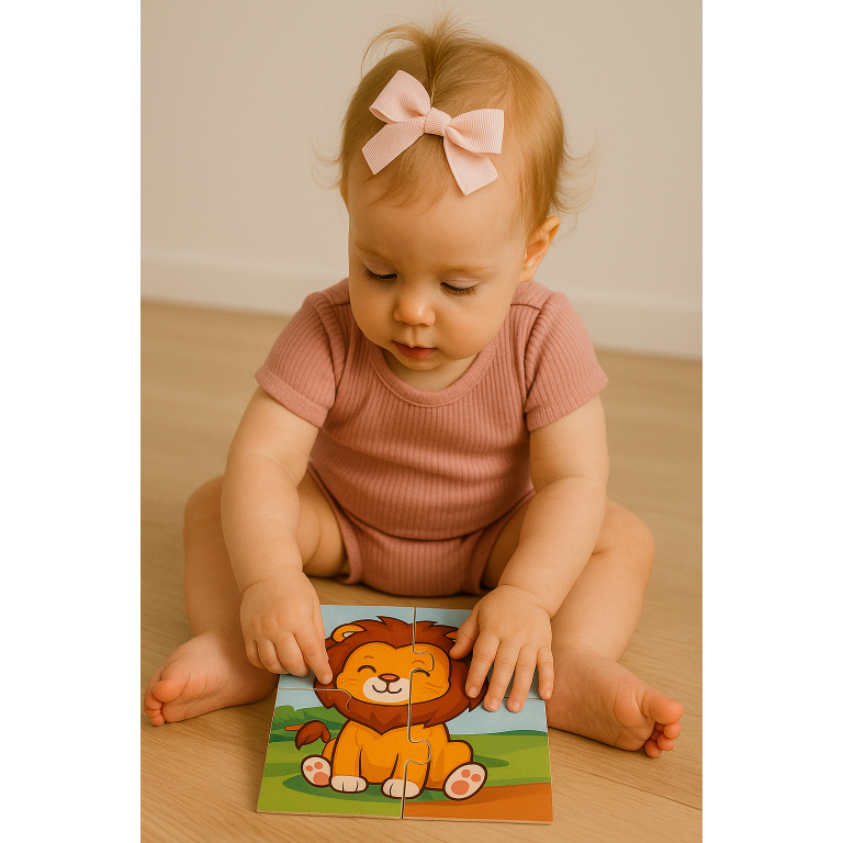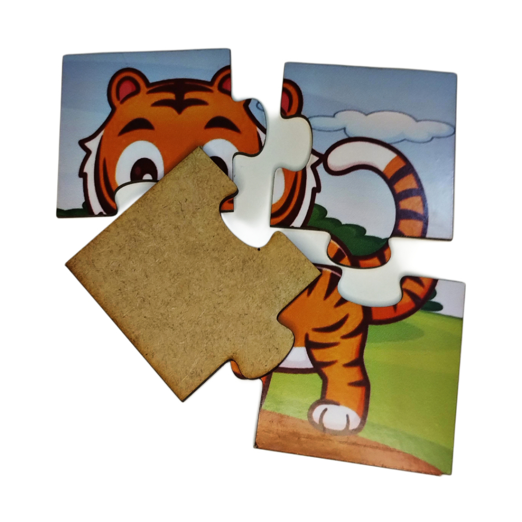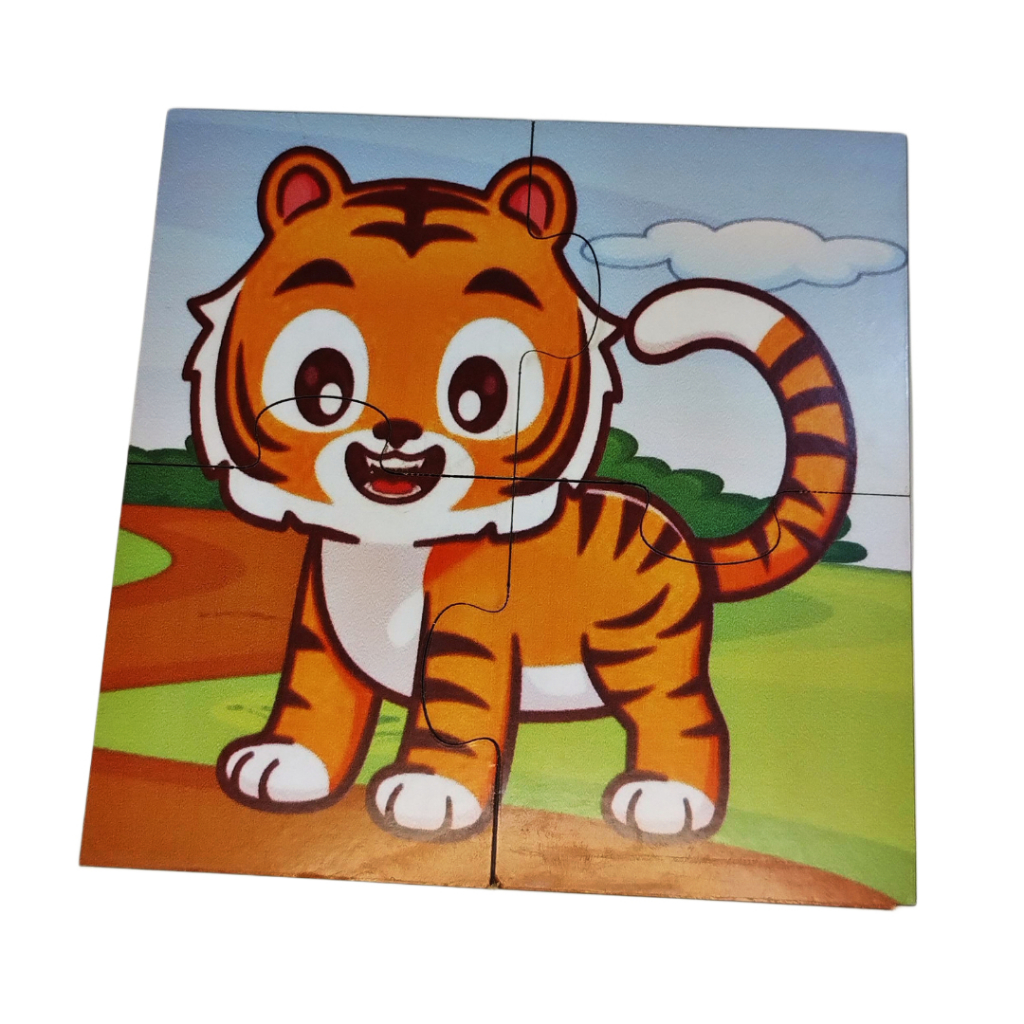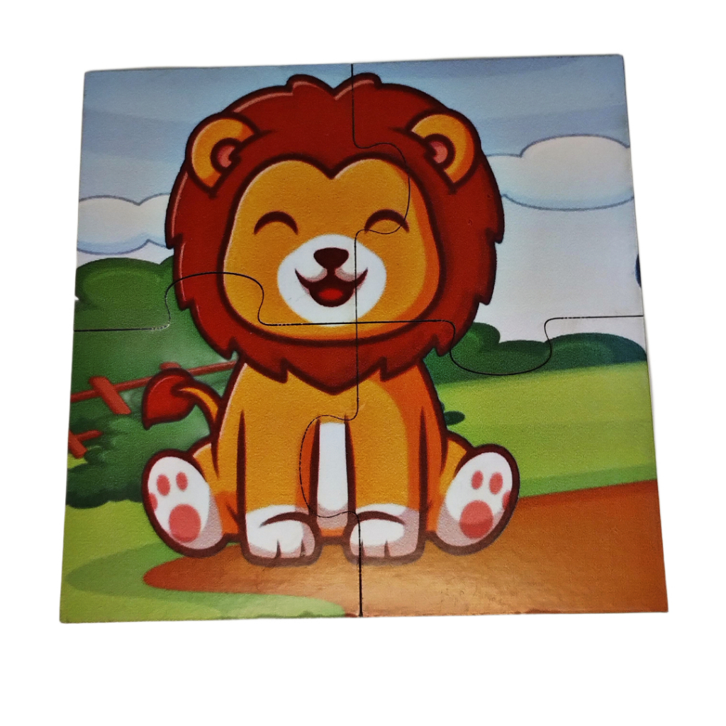 Kit 4 jogos Quebra cabeça de mdf 14x14cm temas Leão Tigre Panda Hipopótamo