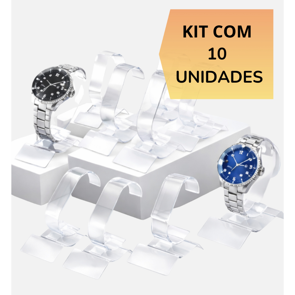 Kit 10 Suportes Expositor De Relógio Acrílico Cristal Premium Organizador De Vitrine Foto Atacado