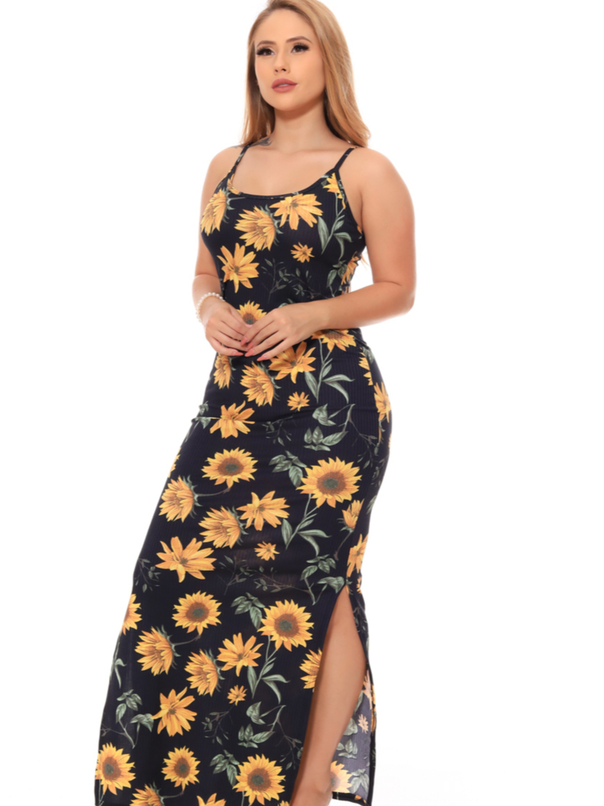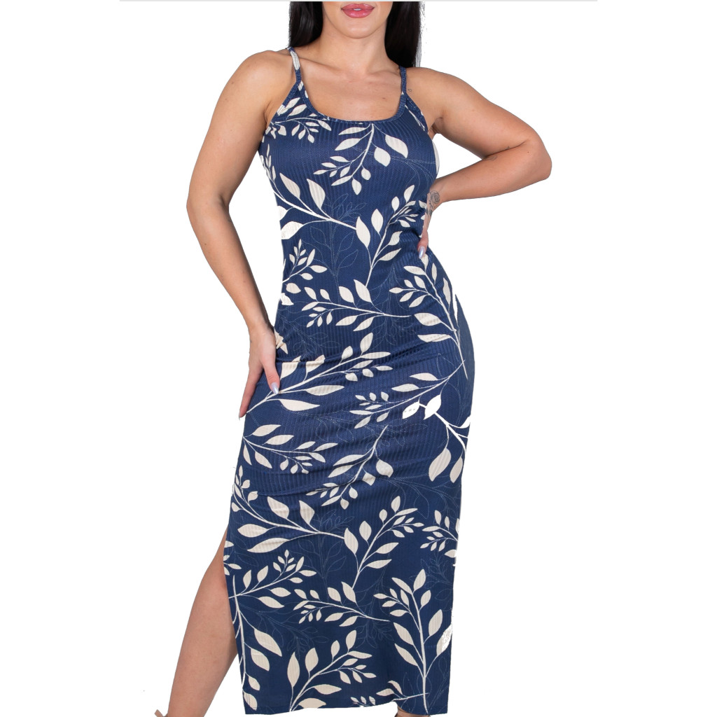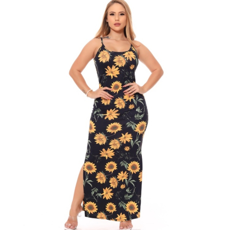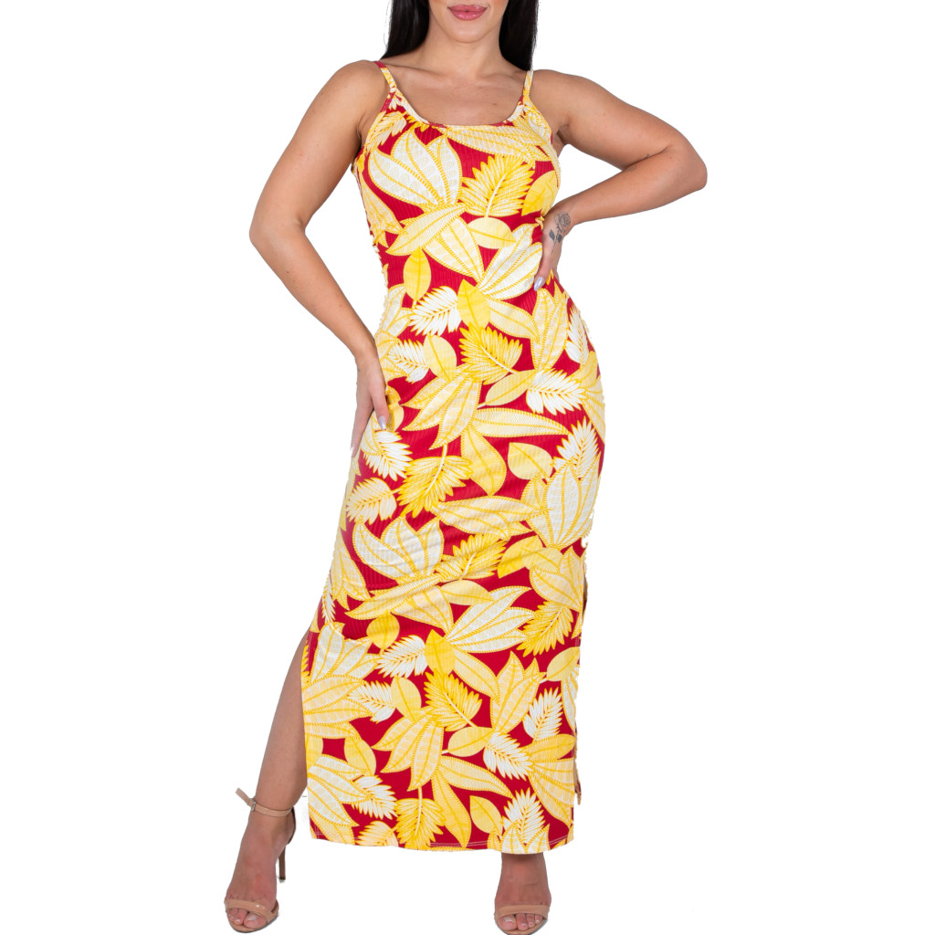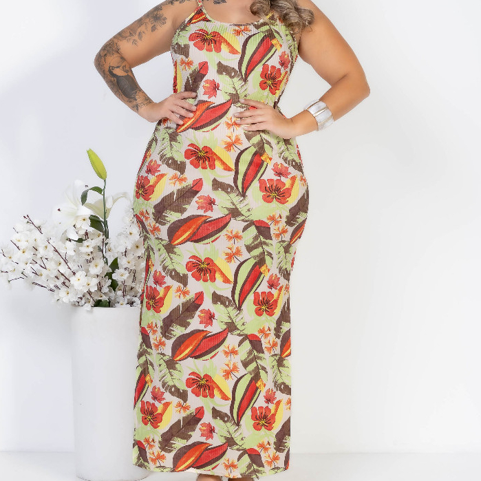 Vestido Alça Floral Canelado Casual Versátil Feminino Nova Moda Verão Fenda Lateral Gestante Evangélico Alcinha