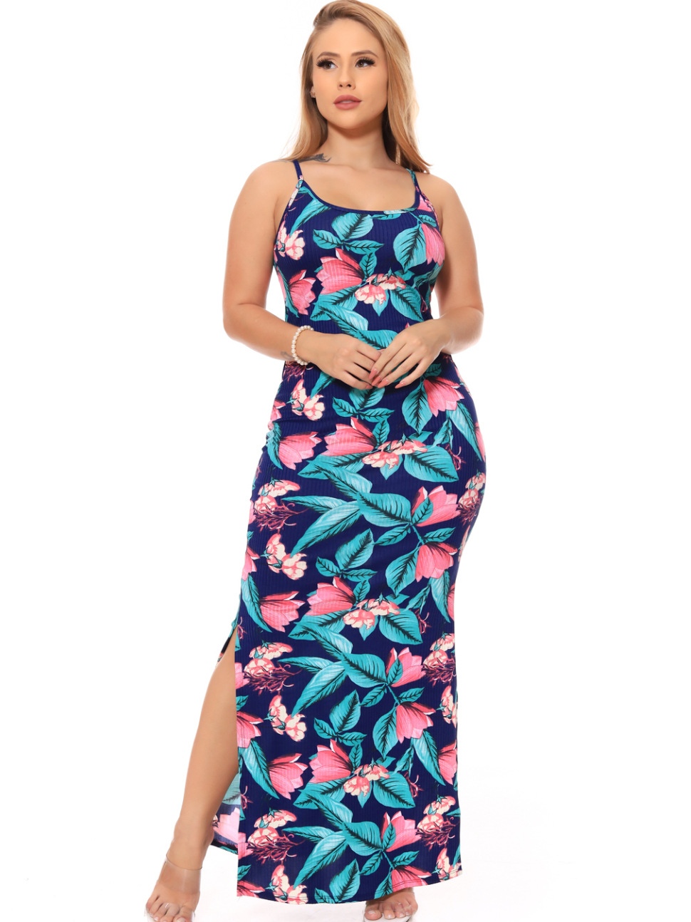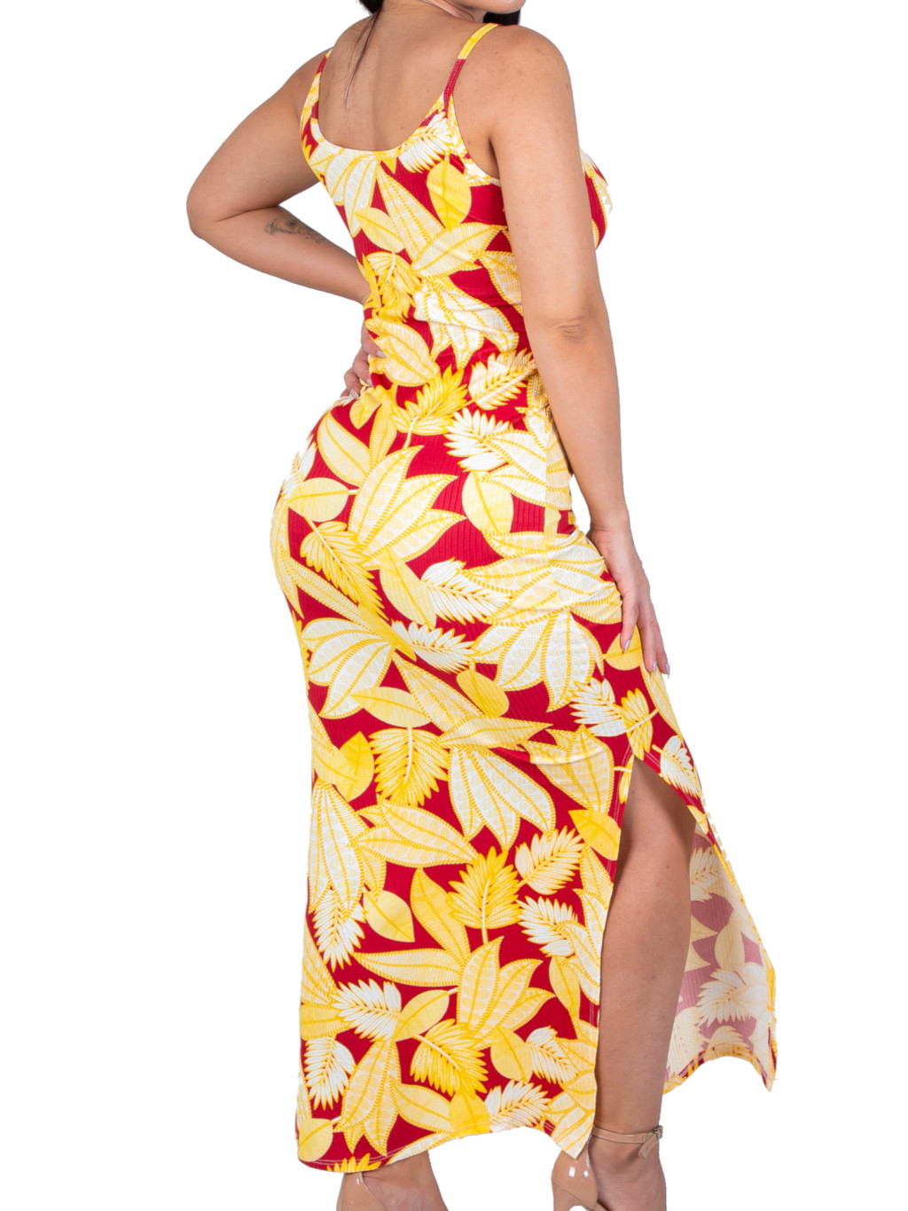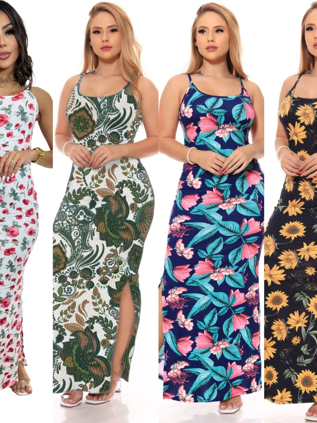 Vestido Alça Floral Canelado Casual Versátil Feminino Nova Moda Verão Fenda Lateral Gestante Evangélico Alcinha