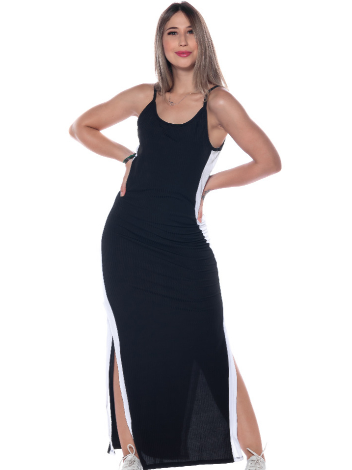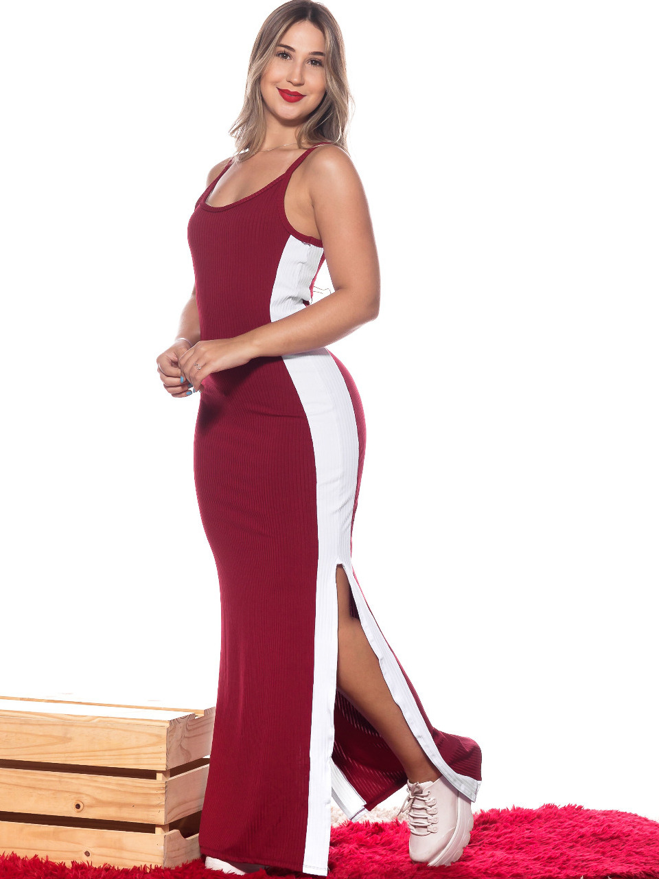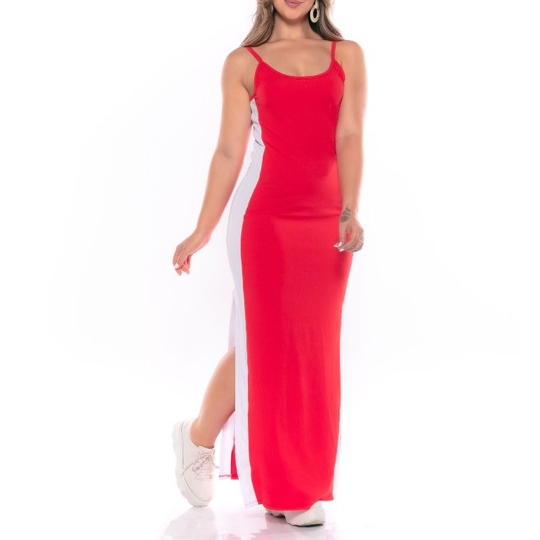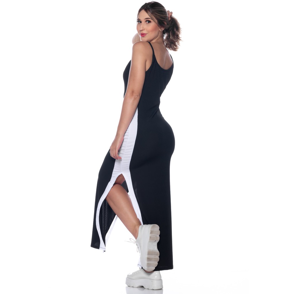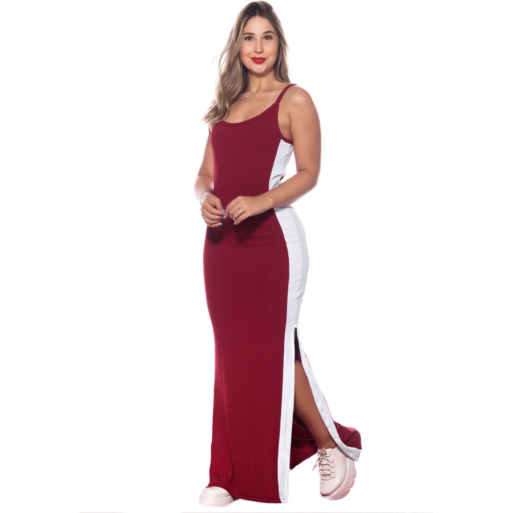 Vestido Faixa Longo Fenda Lateral Casual Canelado Alcinha Tendência Moda Feminina Gestante Maternidade Curve Plus Size