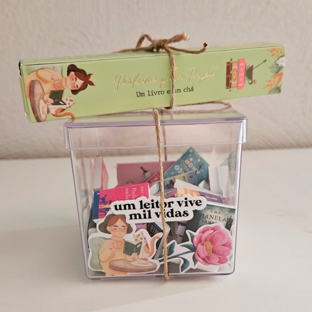 Caixinha Presente Decorativo com Mini Livros 8x8cm