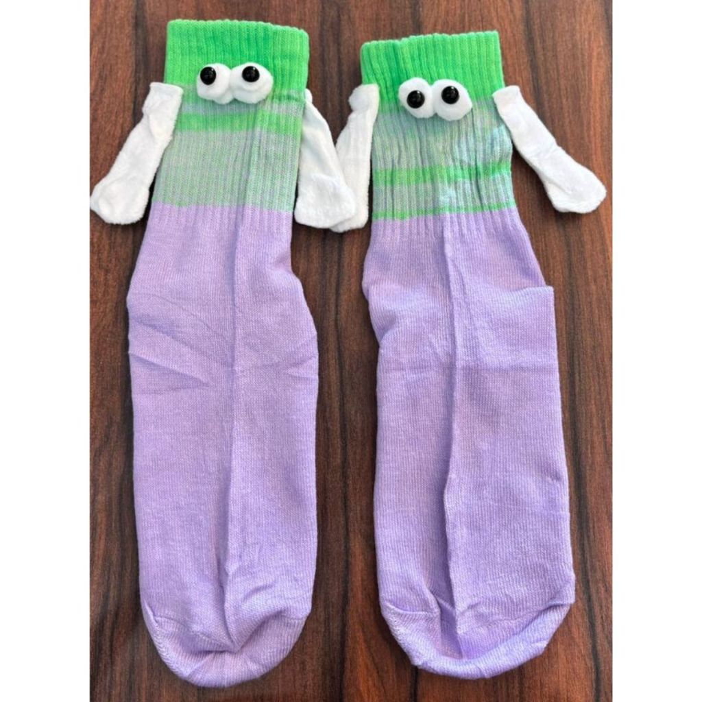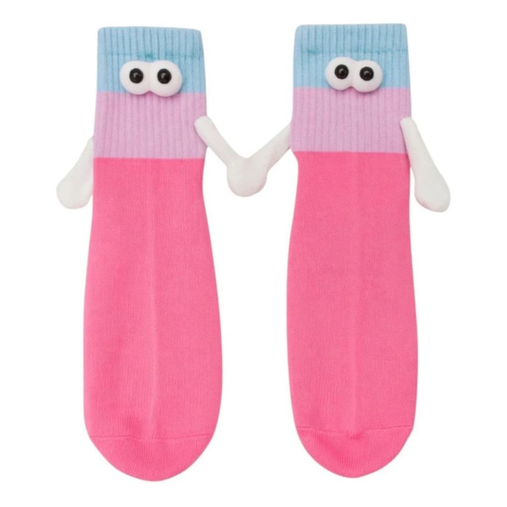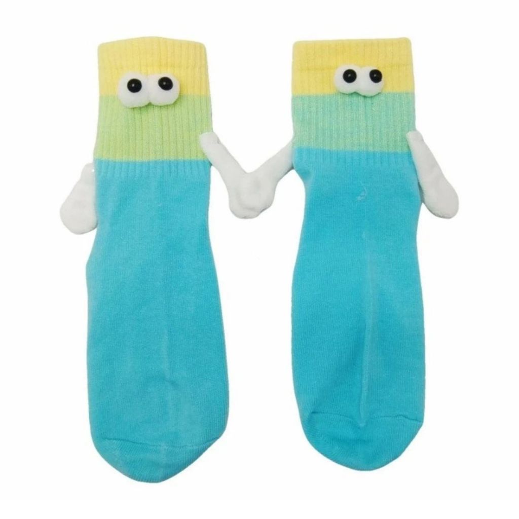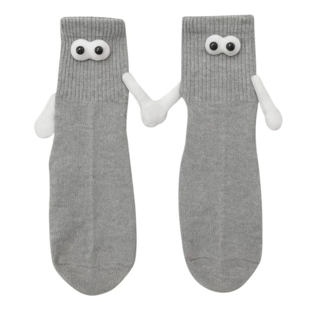 Meias Divertidas Femininas e Masculinas Casais com Ímã nas Mãos Olinho 3D