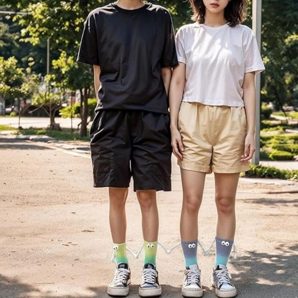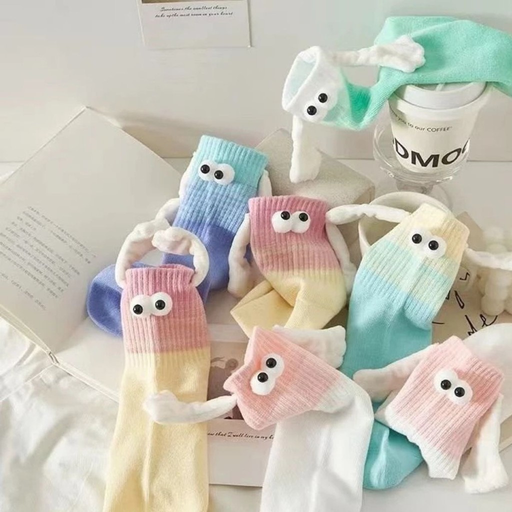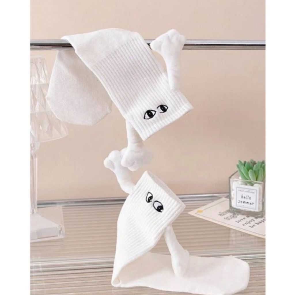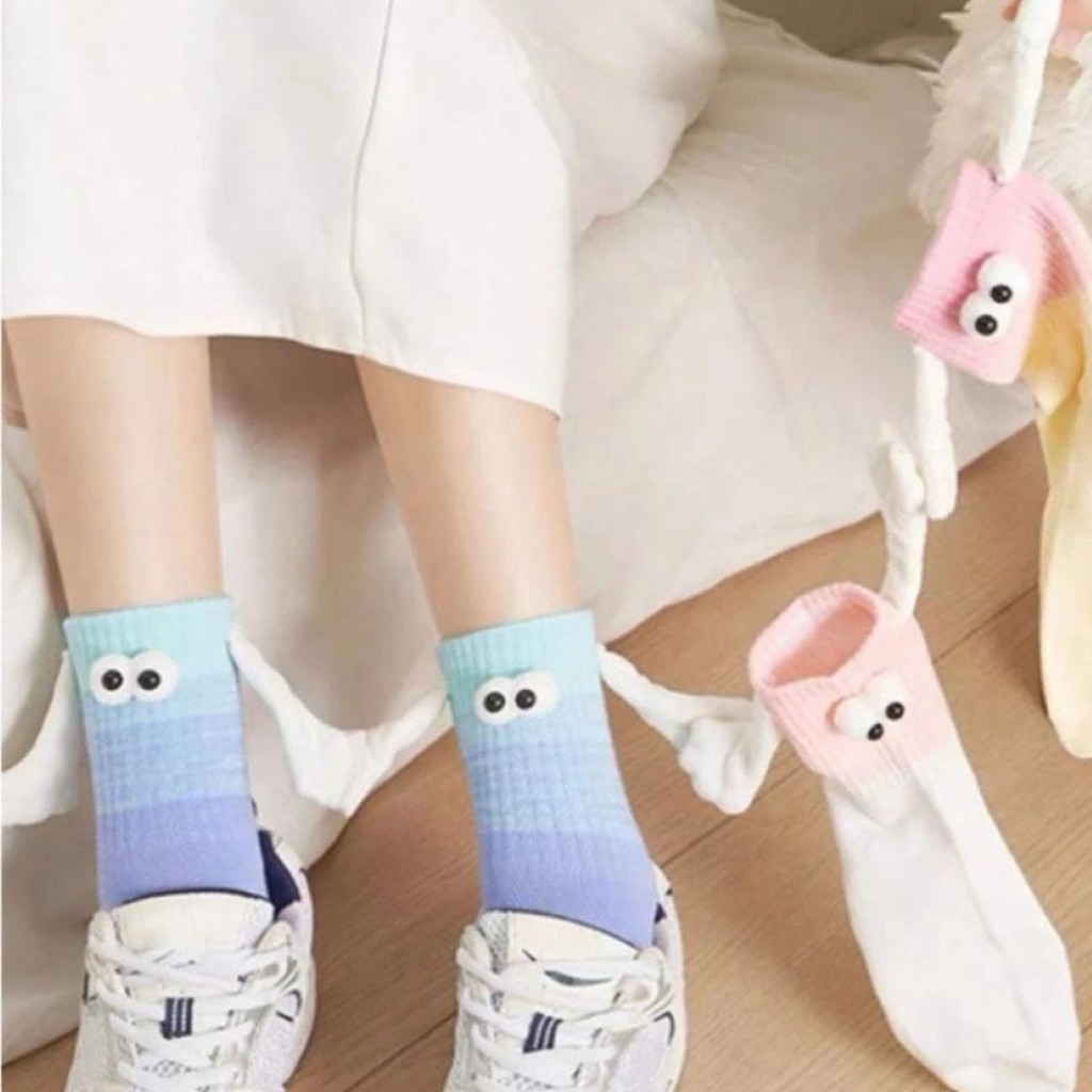 Meias Divertidas Femininas e Masculinas Casais com Ímã nas Mãos Olinho 3D