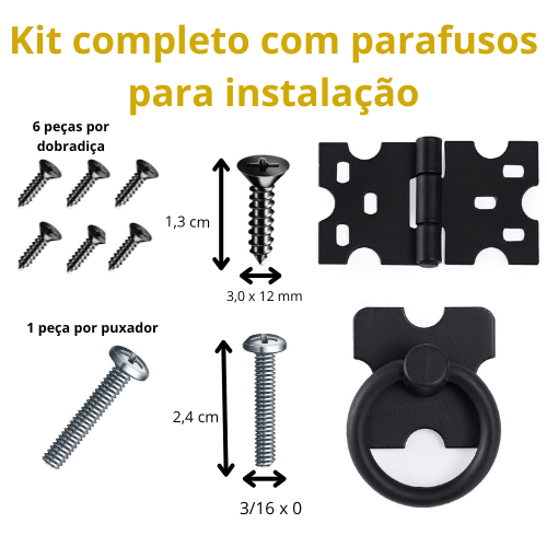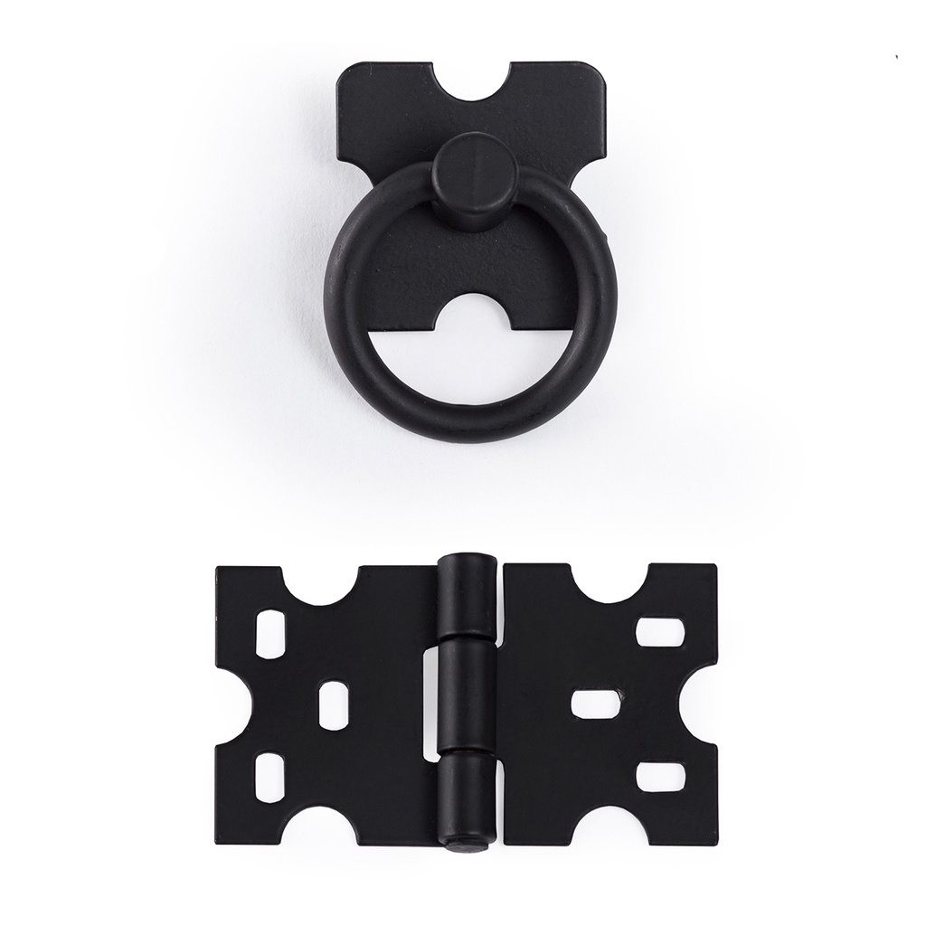 Kit 16 unidades 8 Dobradiças mexicana + 8 Puxador argola rustico preto