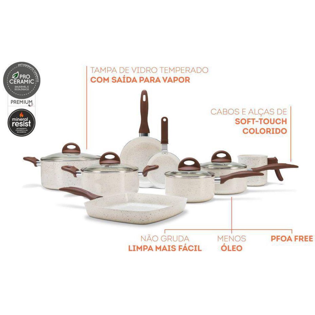 Jogo de Panelas Brinox Smart Plus Ceramic Life 8 Pç Vanilla