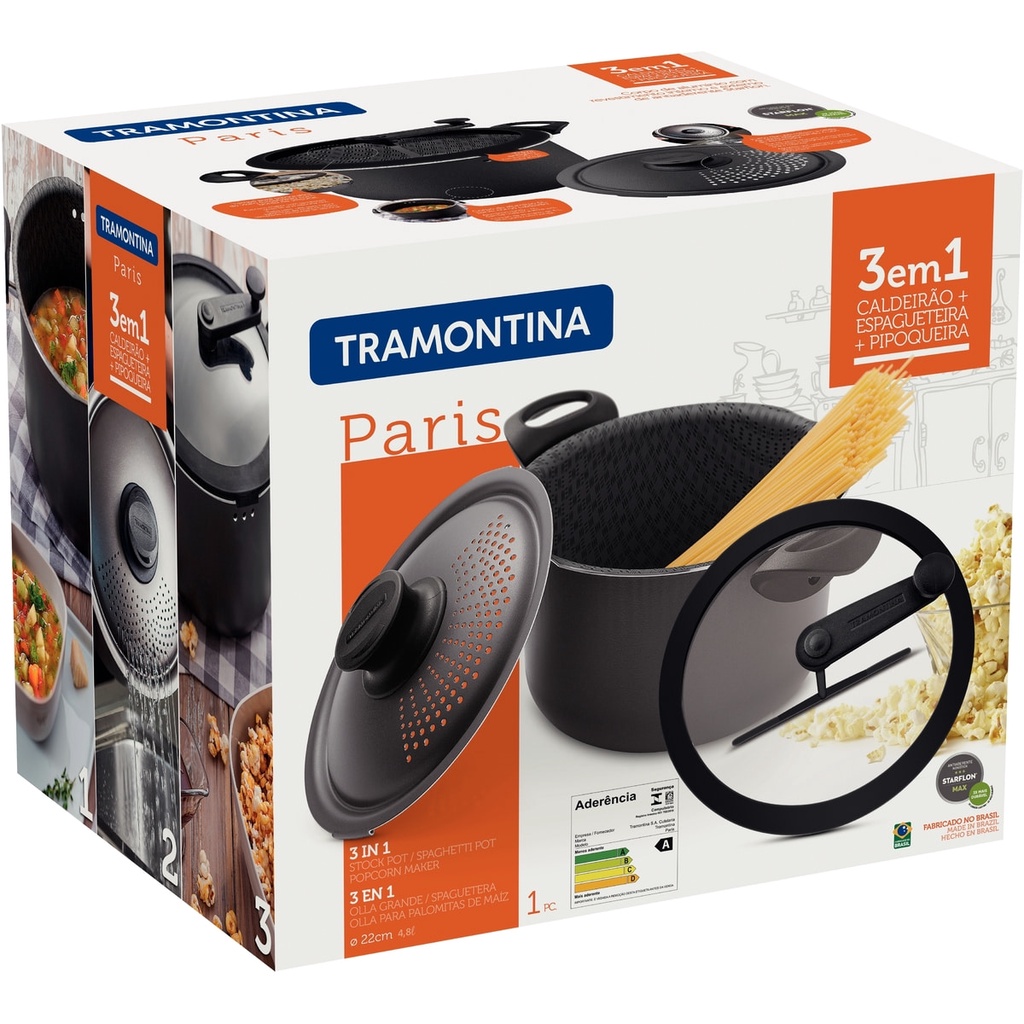 Panela 3 em 1 Tramontina Antiaderente Paris 22cm Grafite