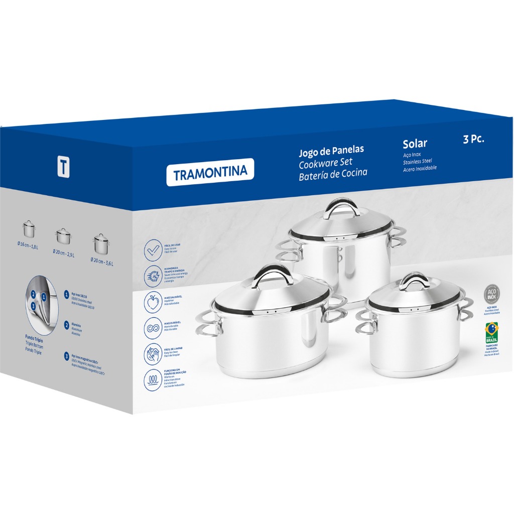 Jogo de Panelas Tramontina Inox Fundo Triplo Solar 3 Pç