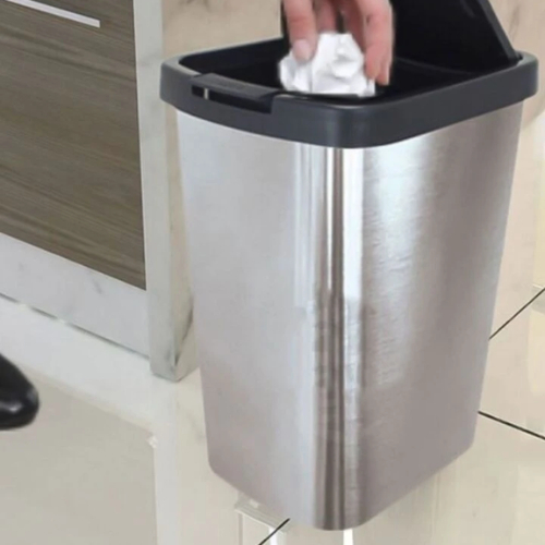 Kit 2 Lixeira Cesto 09 Litros Inox Com Tampa Click Label Lixeira Escritório Lixeira Banheiro